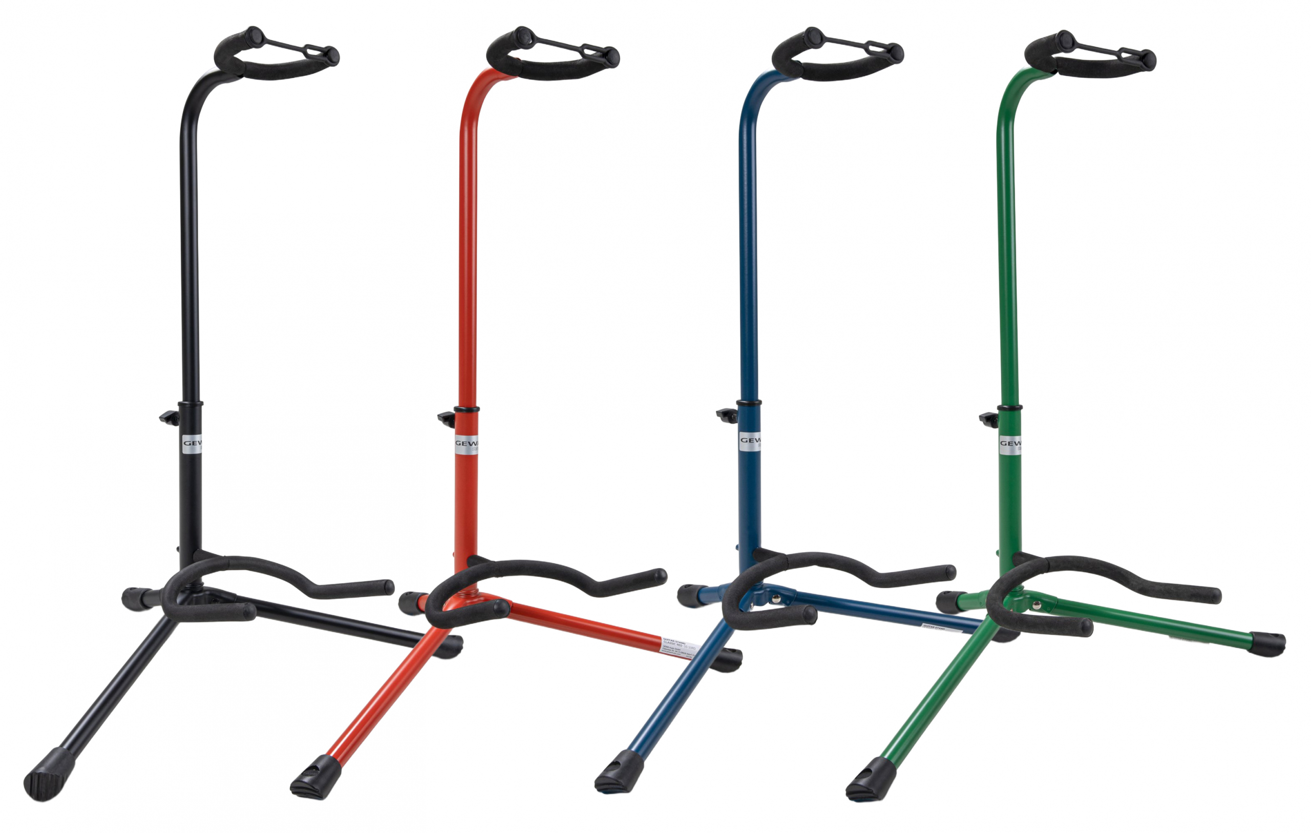 Універсальні гітарні стійки GEWA GS-10 вирізняються привабливою ціною, надійністю конструкції, безпечністю для більшості типів лакового покриття та асортиментом кольорів. Це хороший вибір для естетичного розміщення вашої гітари у просторі.