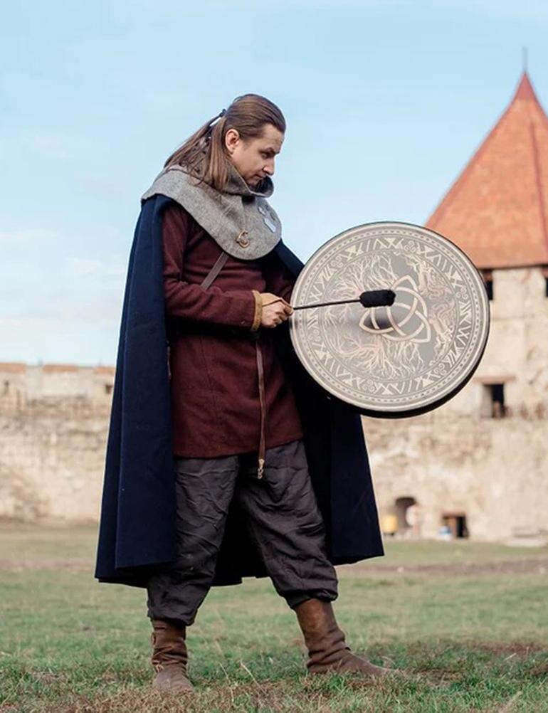 Образ шамана підійде тим, хто хоче виглядати містично та загадково. Для костюма підійдуть натуральні тканини, накидка або жилет із бахромою, етнічні прикраси, намиста, браслети та головний убір із пір’ям або бусинами. Макіяж можна зробити яскравим і контрастним, з акцентом на очі. Шаманський образ може варіюватися в деталях, залежно від того, який настрій ви хочете передати. Щоб зробити костюм повністю автентичним і музично цікавим, обов’язковим атрибутом стане шаманський бубен або інший етнічний музичний інструмент – це може бути діджеріду, дримба тощо. Такий реквізит не тільки підкреслює характер шамана, а й дозволяє оживити образ на вечірці, створюючи ритм і атмосферу справжнього шаманського обряду.