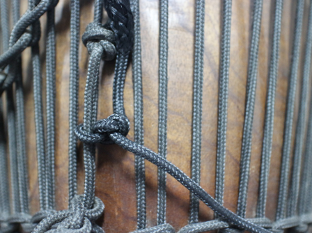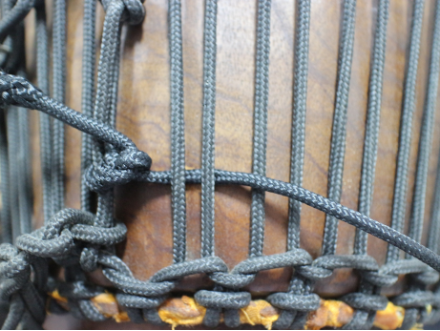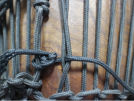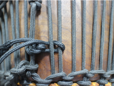 Під час налаштування джембе багато хто стикається з проблемою закручування мотузки, що ускладнює процес. Щоб цього уникнути, варто протягувати мотузку через вертикальні ряди не кінчиком, а починаючи з найближчої точки – це допоможе автоматично розплутувати перекрути й отримати рівномірне, акуратне плетіння.
