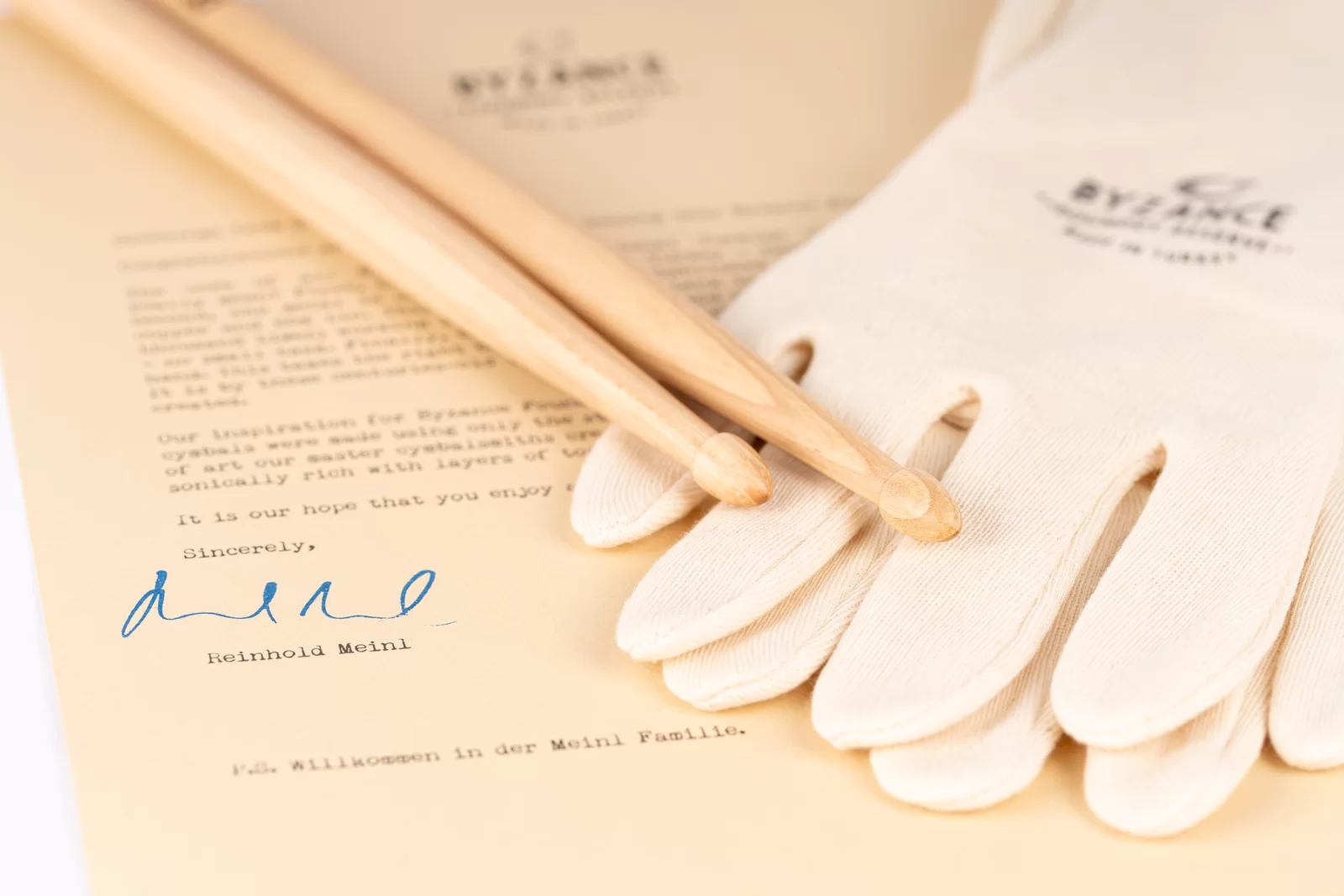 Щоб підкреслити обмежений характер тиражу і велику кількість роботи, яка вкладається в кожну тарілку, Meinl додали до кожної тарілки кілька додаткових спеціальних предметів. Лист від пана Райнхольда Майнла, сертифікат автентичності, пара барабанних паличок Meinl Stick & Brush Standard 5A і, нарешті, пара рукавичок зі 100% бавовни для роботи з тарілками.