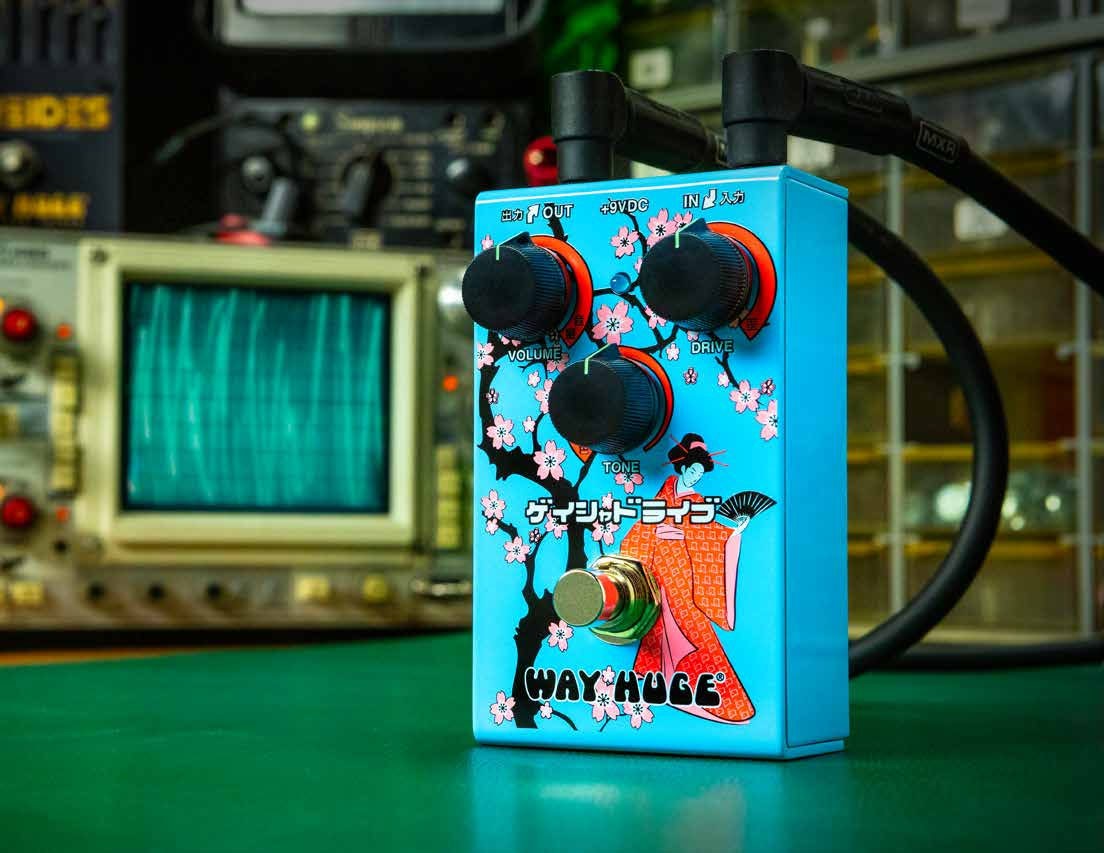 Way Huge Smalls Geisha Drive створює широкий діапазон динамічних, чутливих до дотику тембрів. Можна налаштувати від овердрайву до повного перевантаження за допомогою регулятора гучності вашої гітари.