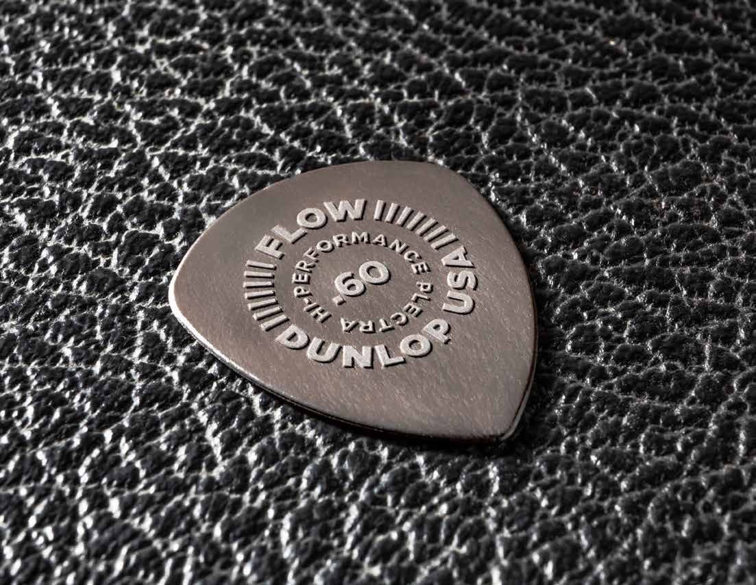 Так само Dunlop вдосконалили дизайн серії Flow, щоб краще доповнювати кастомну суміш нейлону: поряд з відомим широким кутом і гострим кінчиком, Dunlop перепроектували скошені краї і створили покращений малюнок насічок для ще більш плавної і комфортної гри.