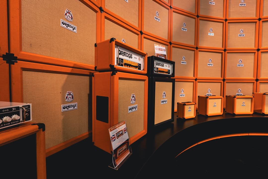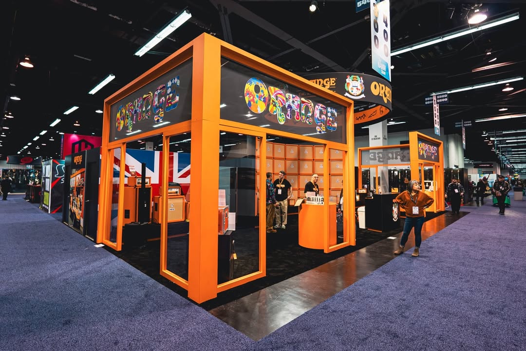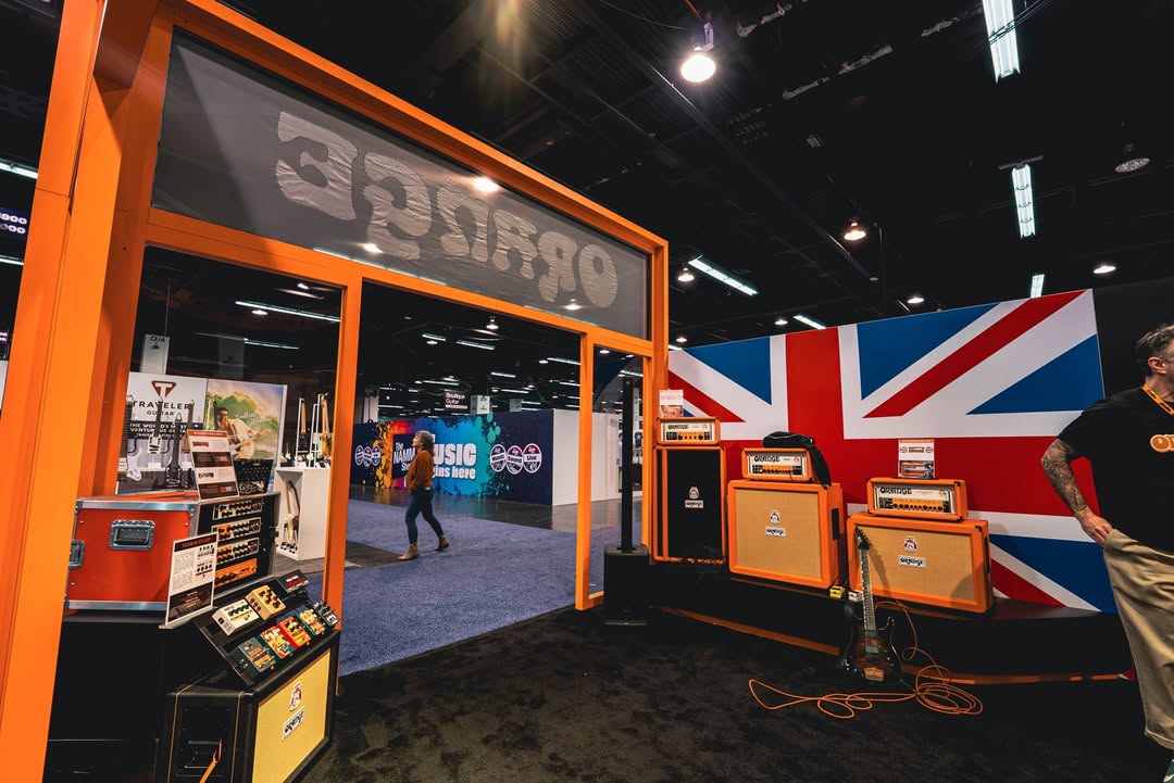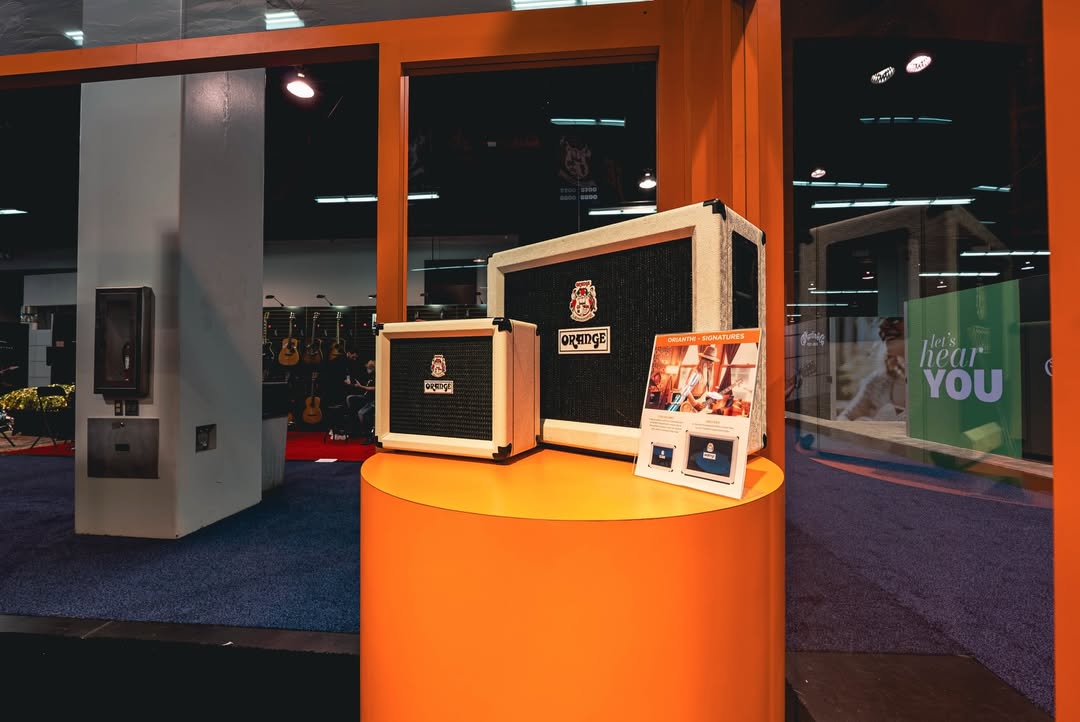 Посеред стенду компанії на виставці NAMM можна було побачити стіну з сорока муляжів кабінетів Orange 4x12", по кутах стенду відвідувачів приваблювали брендовані арки з психоделічними лого, що нагадують оздобленно входу до лондонського магазину Orange закритого у 1978 році.
