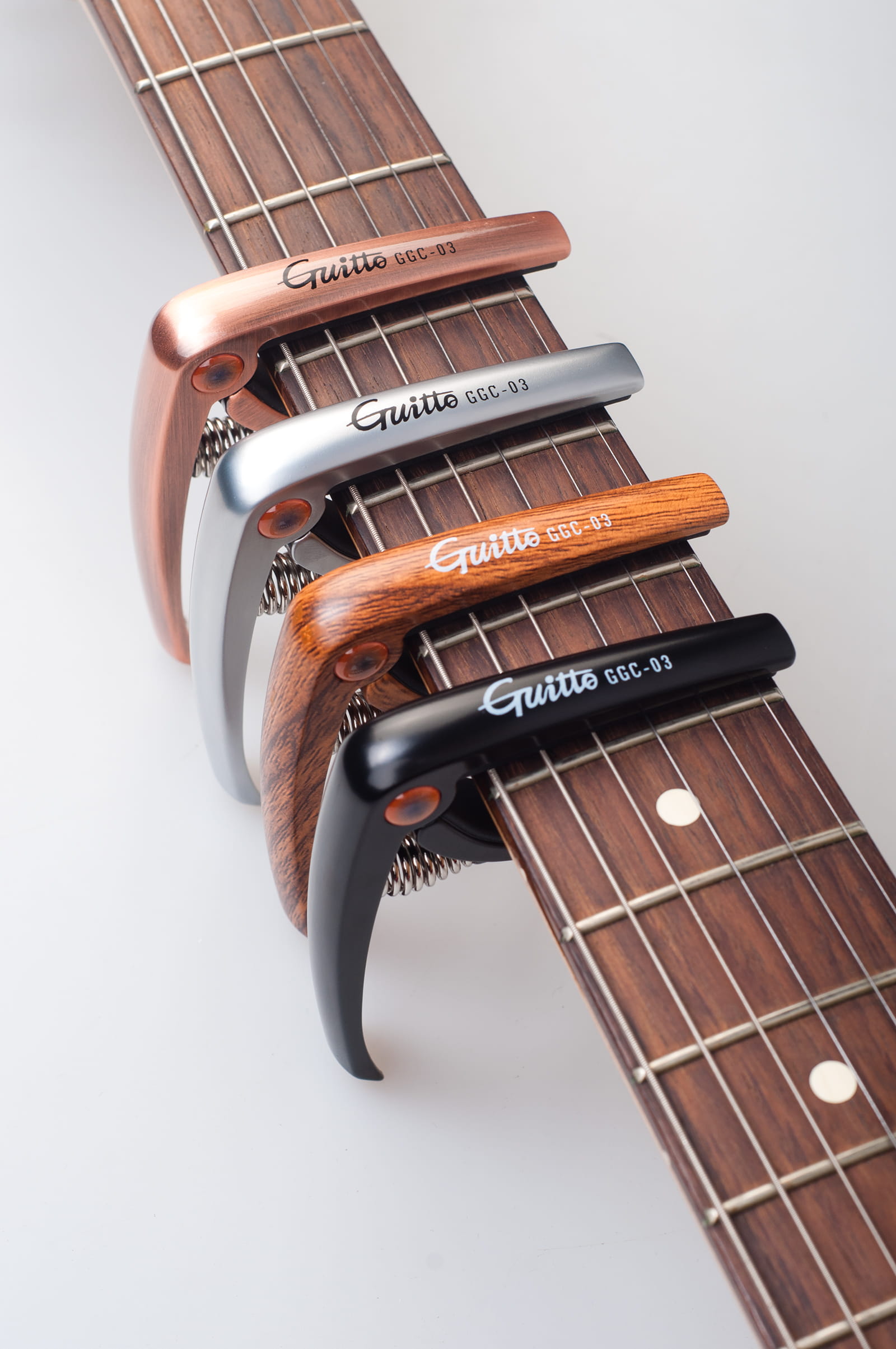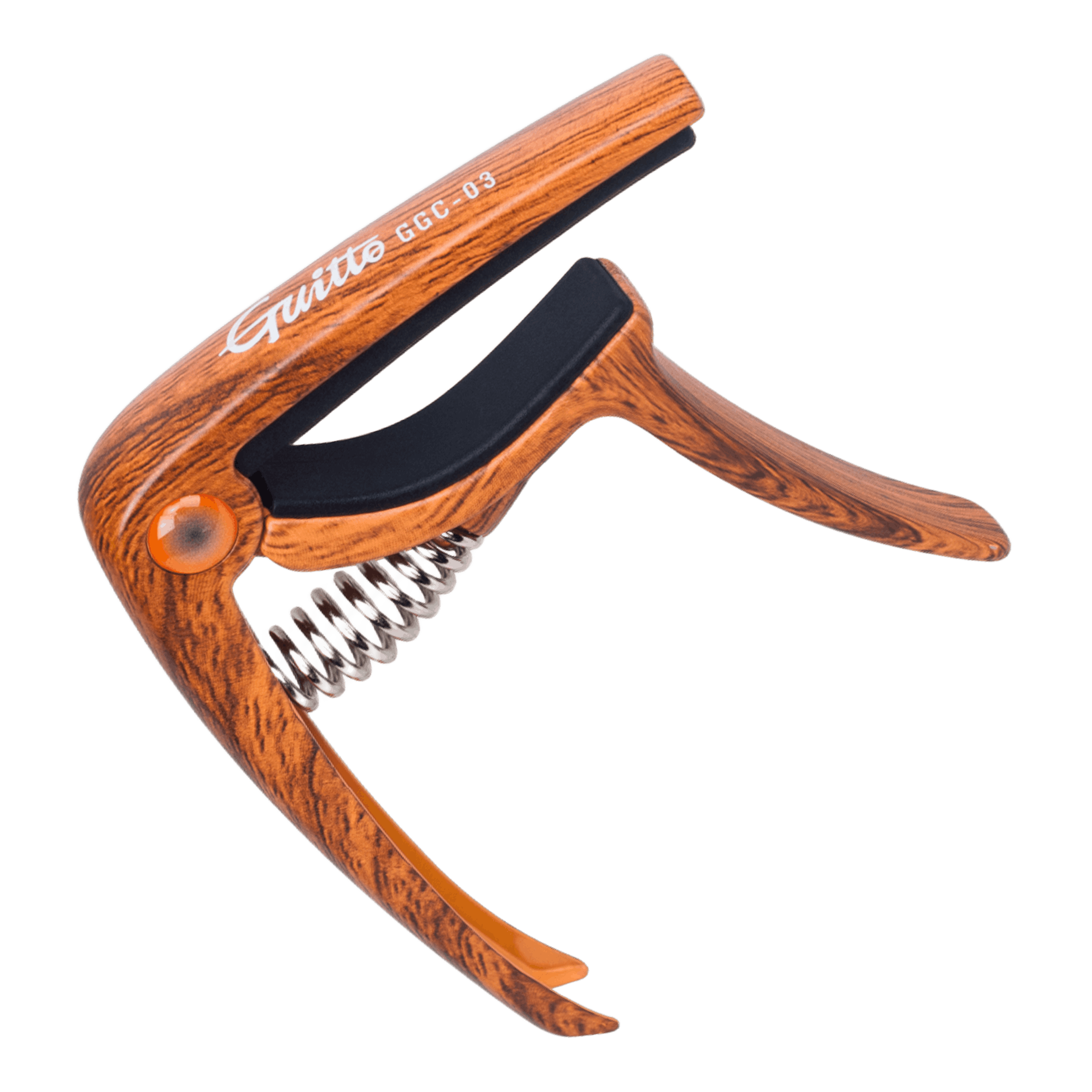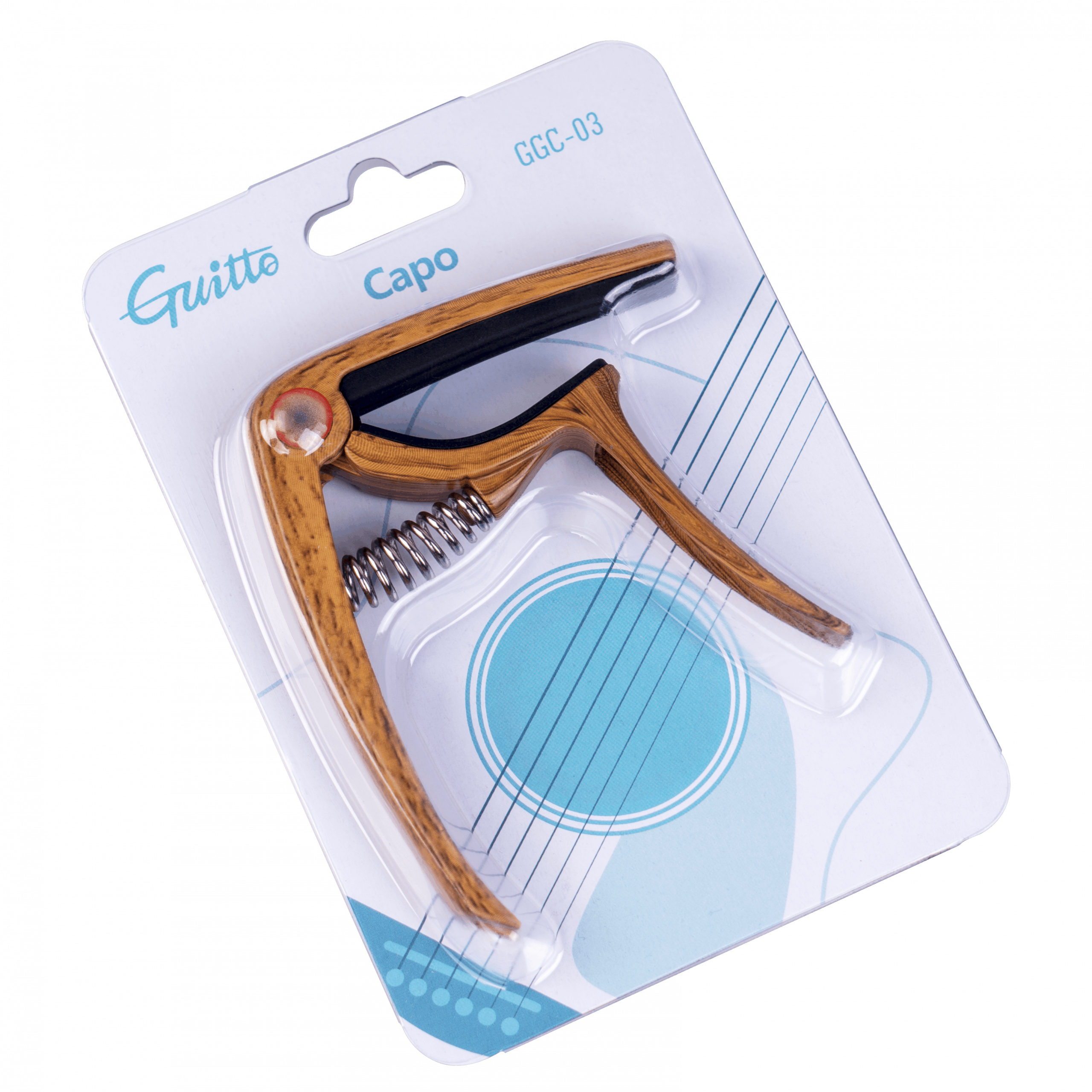 Guitto гарантують належне прилягання елементів каподастра та використання якісного силікагелю, щоб при грі з каподастром ваш інструмент звучав так само чисто, як і без нього. Також каподастр Guitto GGC-03 має спеціальну виїмку на корпусі для виймання пінів на струнотримачі акустичної гітари.