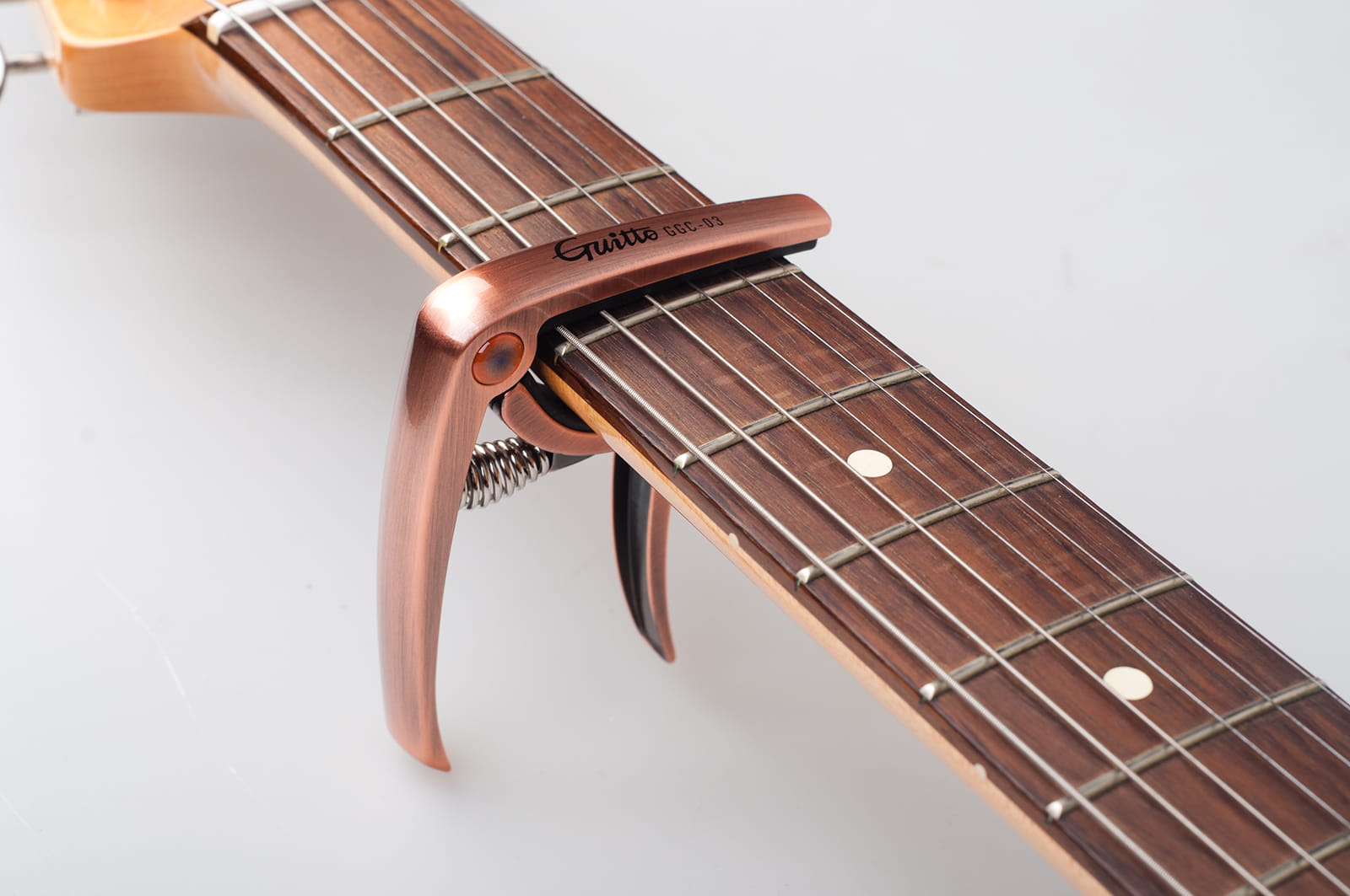 Каподастр Guitto GGC-03 підходить для використання з електрогітарою, акустичною гітарою та укулеле. Виготовлений з цинкового сплаву за технологією вакуумного лиття, каподастр має привабливе і довговічне поліроване гальванічне покриття. Високоякісна пружина забезпечує стабільну еластичність, плавний хід та комфорт при використанні.