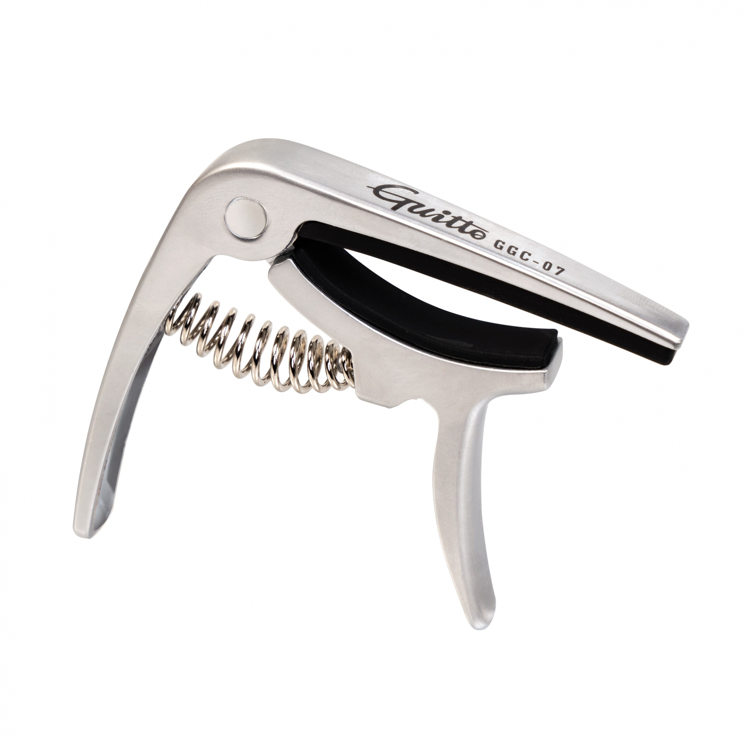 Корпус виготовлений з цинкового сплаву, міцного і стійкого до корозії чи зносу. Має силіконову накладку, яка міцно притискає струни до ладів, без дзвону чи ризику пошкодити струни або гриф. Завдяки ергономічному дизайну та пружині з стабільним натягом каподастр Gutto GGC-07 не перетискає струни та є простим у використанні: його легко встановлювати на гриф однією рукою.