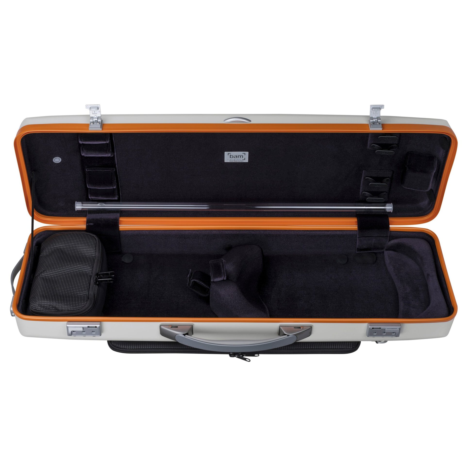 Унікальність цього футляра полягає у фірмовій технології BAM Hightech, розробленій і виготовленій у Франції. Корпус має тришарову конструкцію з високотехнологічних матеріалів — ABS, інжектованої твердої поліуретанової піни та PETG. Така структура забезпечує виняткову ударостійкість, герметичність і захист від вологи та температурних коливань, зберігаючи при цьому оптимальну вагу. Внутрішня ергономіка продумана до найменших деталей. Скрипка фіксується за допомогою спеціальних подушок, що мінімізує контакт із корпусом і запобігає зайвому тиску на деку. Знімний внутрішній чохол для аксесуарів, чотири тримачі для смичків і ремінь для фіксації мостика забезпечують зручність та порядок під час щоденного використання.