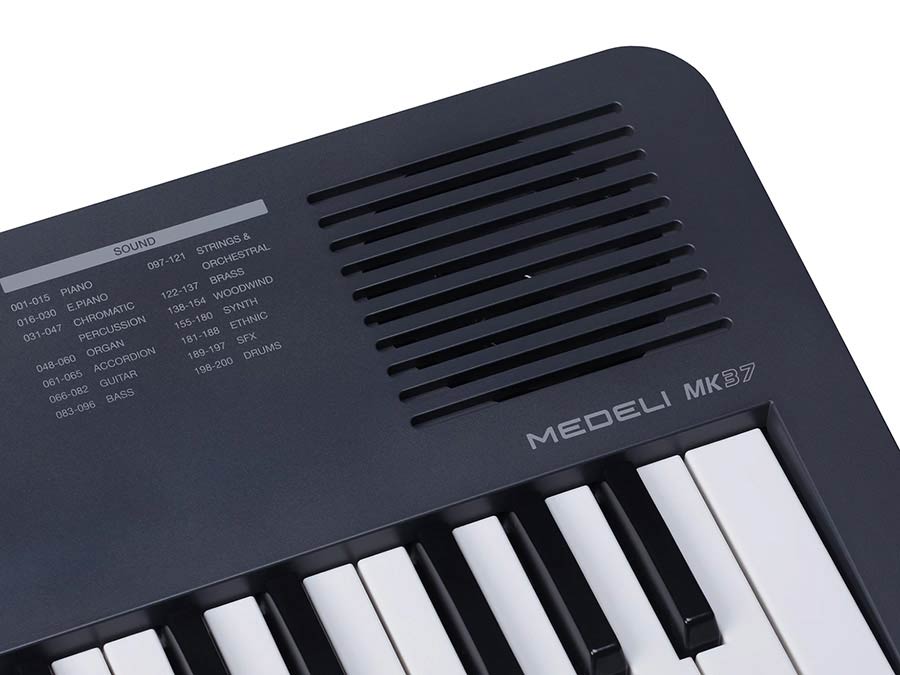 Medeli MK37 — це міні-синтезатор із серії Nebula, який поєднує компактність дитячого синтезатора з функціоналом навчального клавішного інструмента. Порівняно з дитячими синтезаторами MK1, модель Medeli MK37 має більше звуків, більшу поліфонію та режим автоакомпанементу. Ця функція хоч не є новою для клавішних інструментів, але це перший раз, коли вона доступна на клавішнику такого маленького розміру!