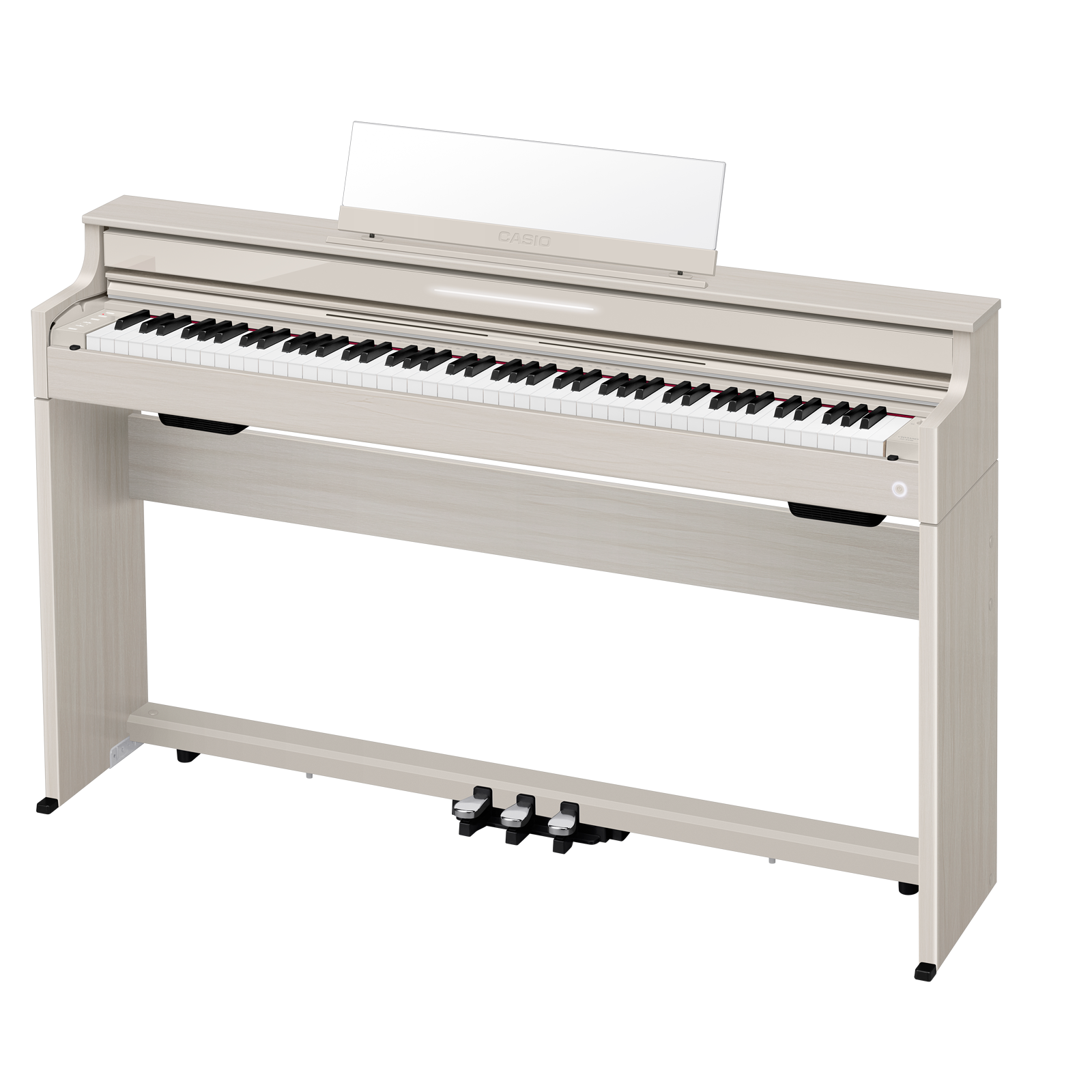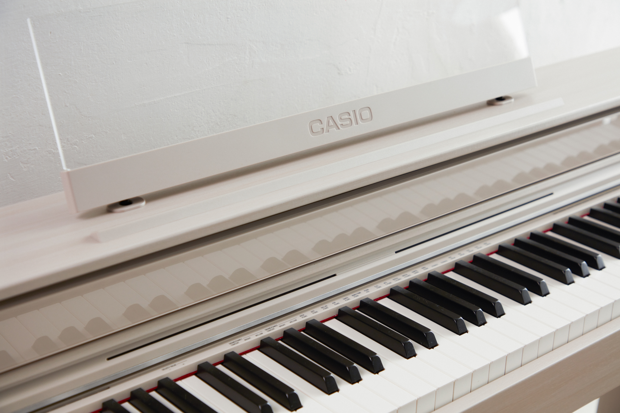 Білі клавіші виготовлені з гібридного матеріалу — поєднання ялини та синтетичної смоли, подібно до конструкції клавіш у роялях. Це забезпечує природні тактильні відчуття і вишуканий зовнішній вигляд.