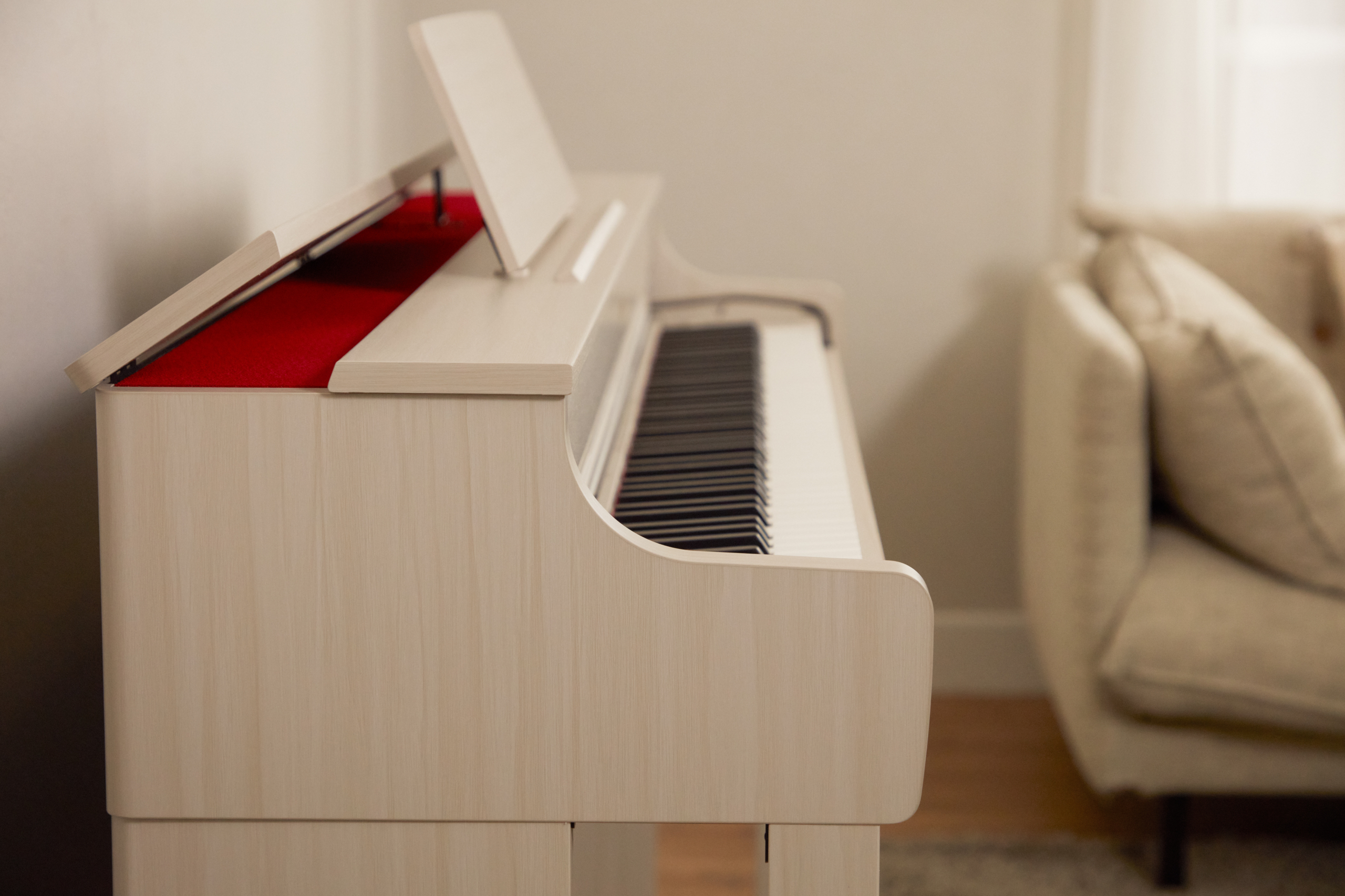 Елегантний дизайн CELVIANO AP-300 гармонійно впишеться в будь-який інтер’єр. Кришка клавіатури закривається плавно і безшумно, забезпечуючи безпеку та захист інструмента. AP-300 доступне в білому кольорі із текстурою натурального дерева, що виглядає стильно та сучасно.