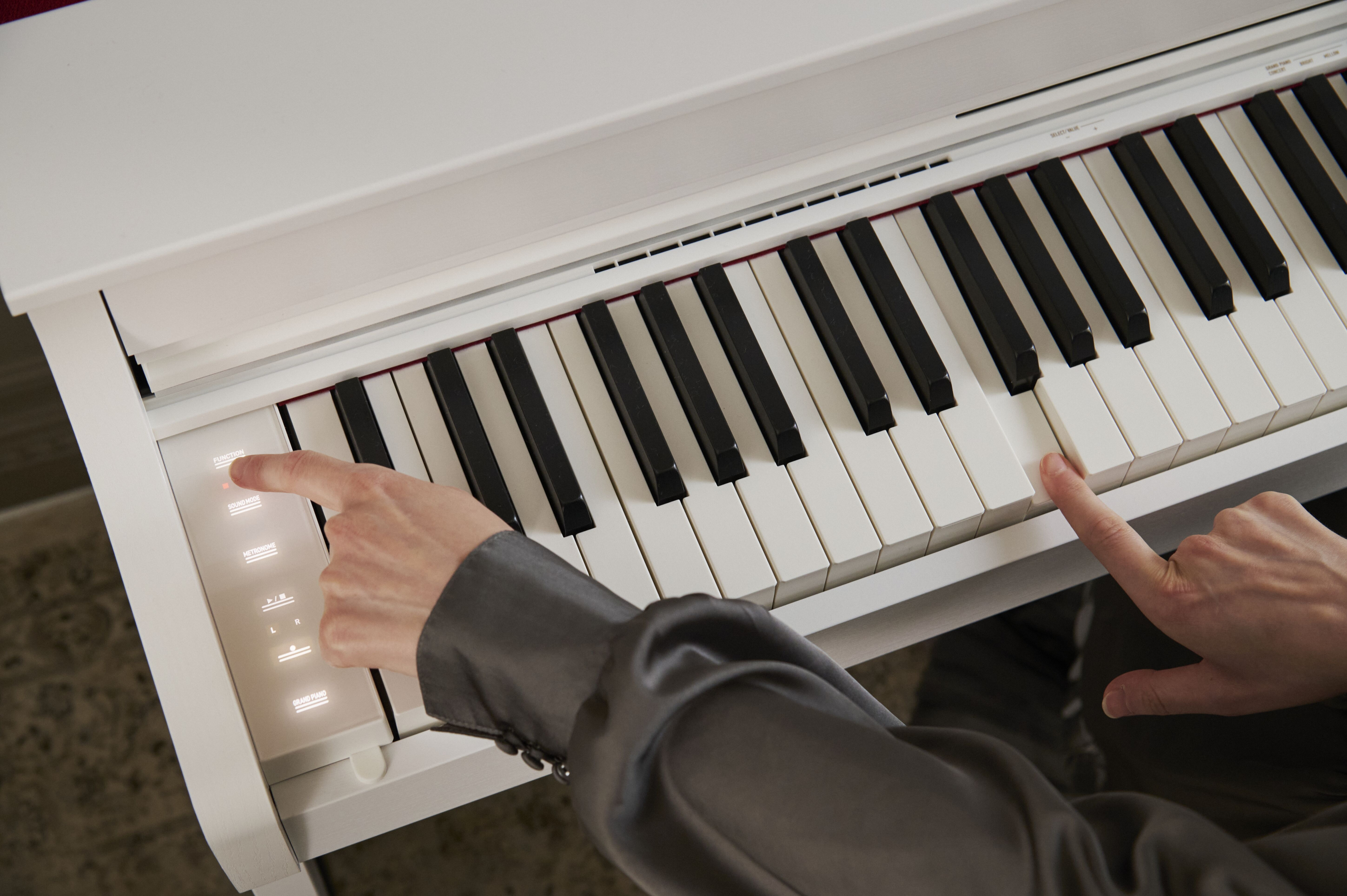 Елегантний дизайн CELVIANO AP-300 гармонійно впишеться в будь-який інтер’єр. Кришка клавіатури закривається плавно і безшумно, забезпечуючи безпеку та захист інструмента. AP-300 доступне в білому кольорі із текстурою натурального дерева, що виглядає стильно та сучасно.