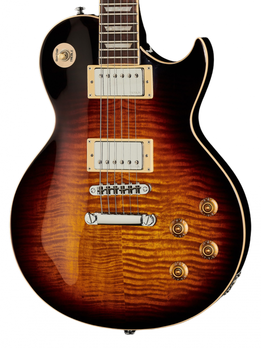 Зверніть увагу на полегшений корпус і розкішну верхню деку з полум'яного клена АААА з красивим покриттям Faded Tabacco, а потім на гриф, який відчувається на мільйон доларів, з 22 ладами з нержавіючої сталі. Два звукознімачі Tesla OPUS-1 AlNiCo-5 з фантастичним звучанням мають чудовий звук, з округлими низькими частотами, шовковисто-гладкою серединою і чіткими високими. Давайте перейдемо до суті: це гітара-звір, з якою вам буде важко розлучитися.