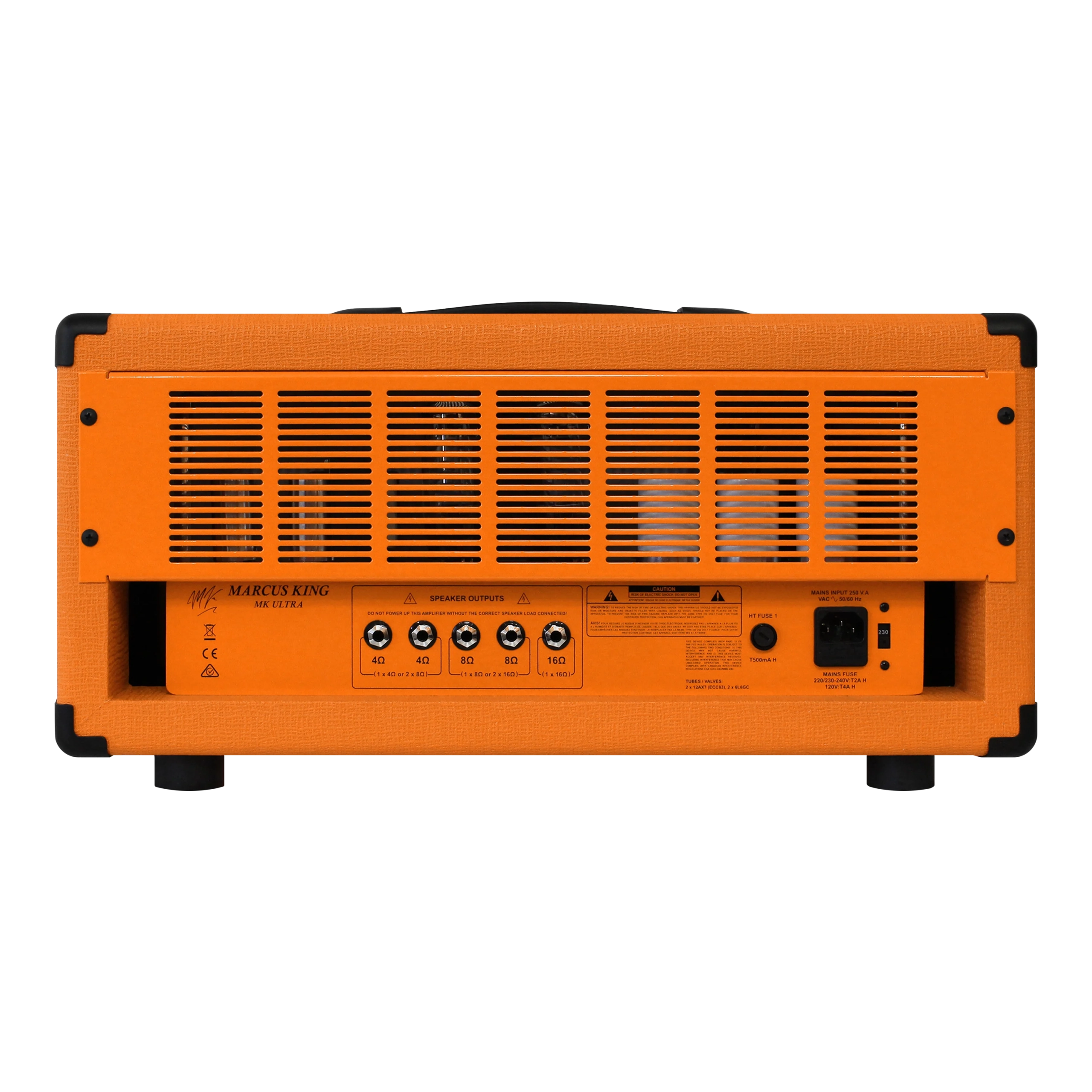 MK Ultra має ретельно налаштовану вхідну схему, яка не тільки чудово реагує на різні рівні гучності і налаштування тембру на гітарі, але й надзвичайно добре сприймає педалі і поєднує їх з тембром, а не "сидить" на них зверху. Це досягається за допомогою пари ламп 12AX7, що живлять секцію попереднього підсилювача, та двох катодно-каліброваних 6L6GC у павер ампі. Такий вибір вихідних ламп є новим для Orange, він дає змогу виділити всі гармоніки і чутливість до дотику, яких вимагає Маркус.
