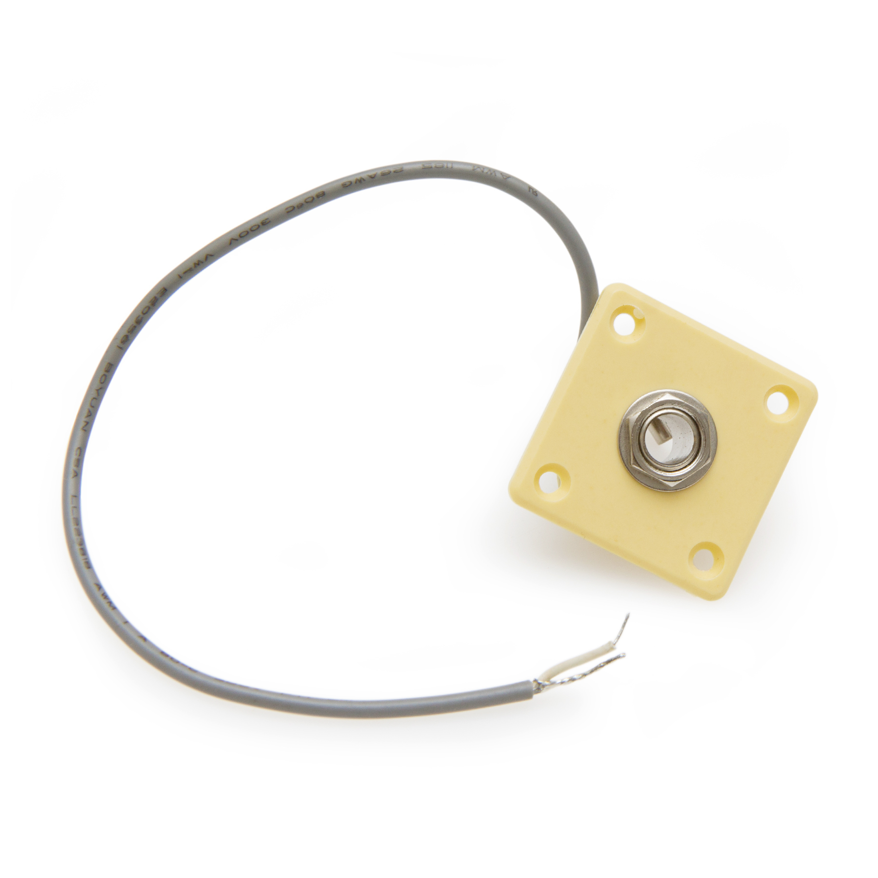 Гніздо jack 6,35 мм для електрогітари з кремовою квадратною пластиковою пластиною для кріплення до корпусу.