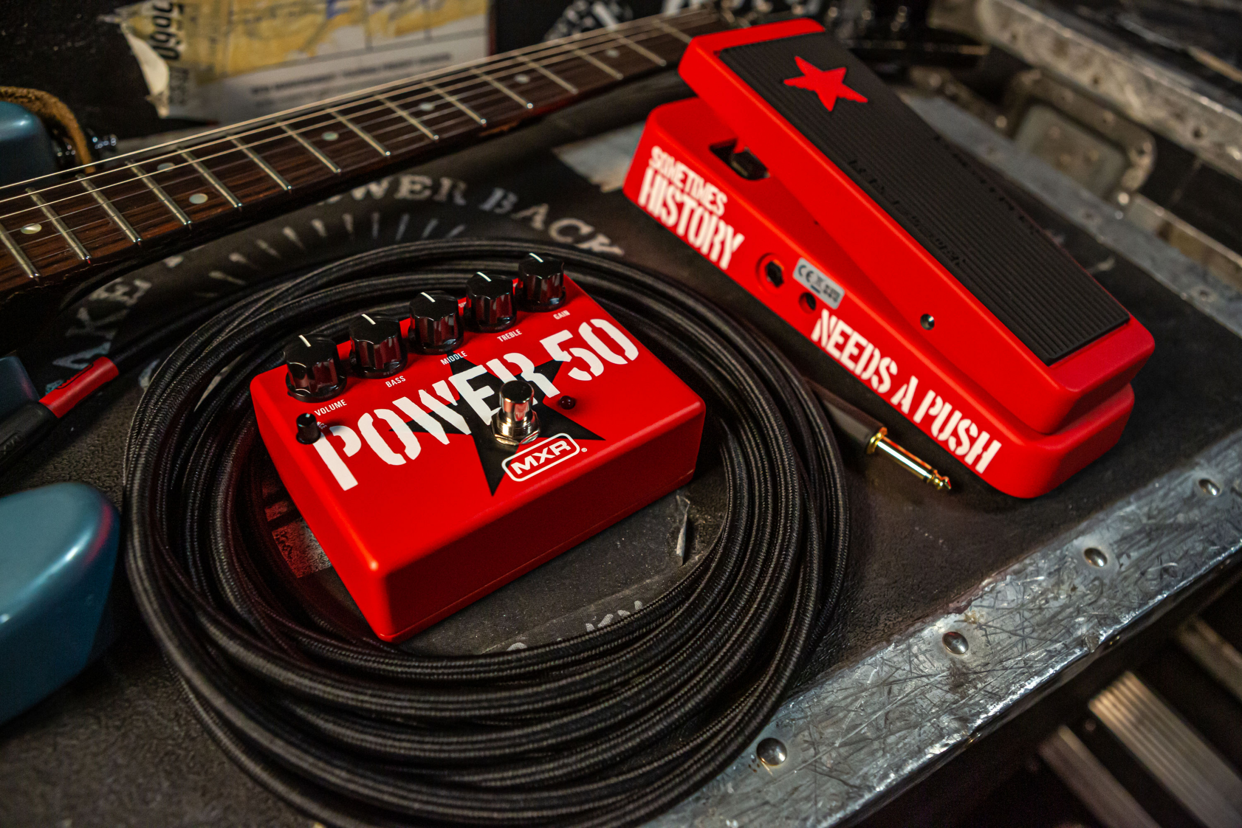 Якщо у вас є Cry Baby® Tom Morello Wah, то саме завдяки петлі ефектів Power 50 ви зможете відтворити те саме звучання вау-педалі Тома. Підключіть вау-вау в насичену гармоніками петлю і активуйте педаль, щоб відтворити його агресивний, але тонально збалансований і схожий на голос звук. Використання Cry Baby Wah перед MXR Power 50 Overdrive дасть більш тонкий ефект вау, а використання після преампа дасть вам дуже виразні високі частоти в положенні "носок вниз".