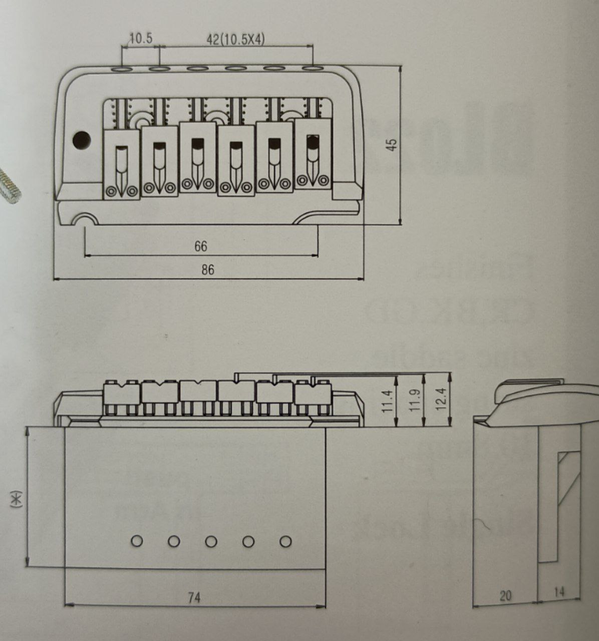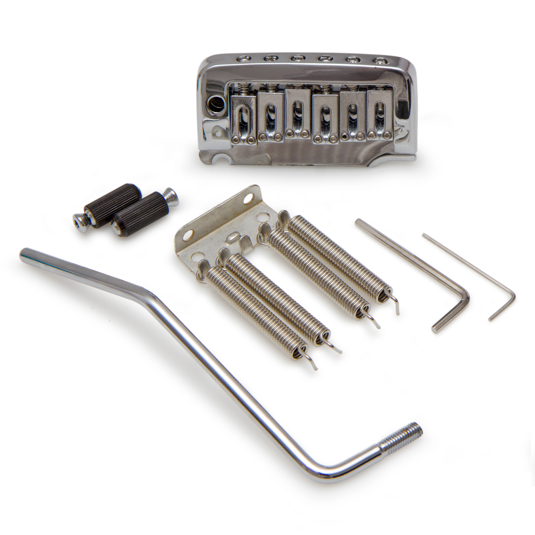Система тремоло для 6-струнної електрогітари. В комплекті тремоло, ручка тремоло, пластина для кріплення пружин, пружини, ключі для налаштування та гвинти для кріплення.