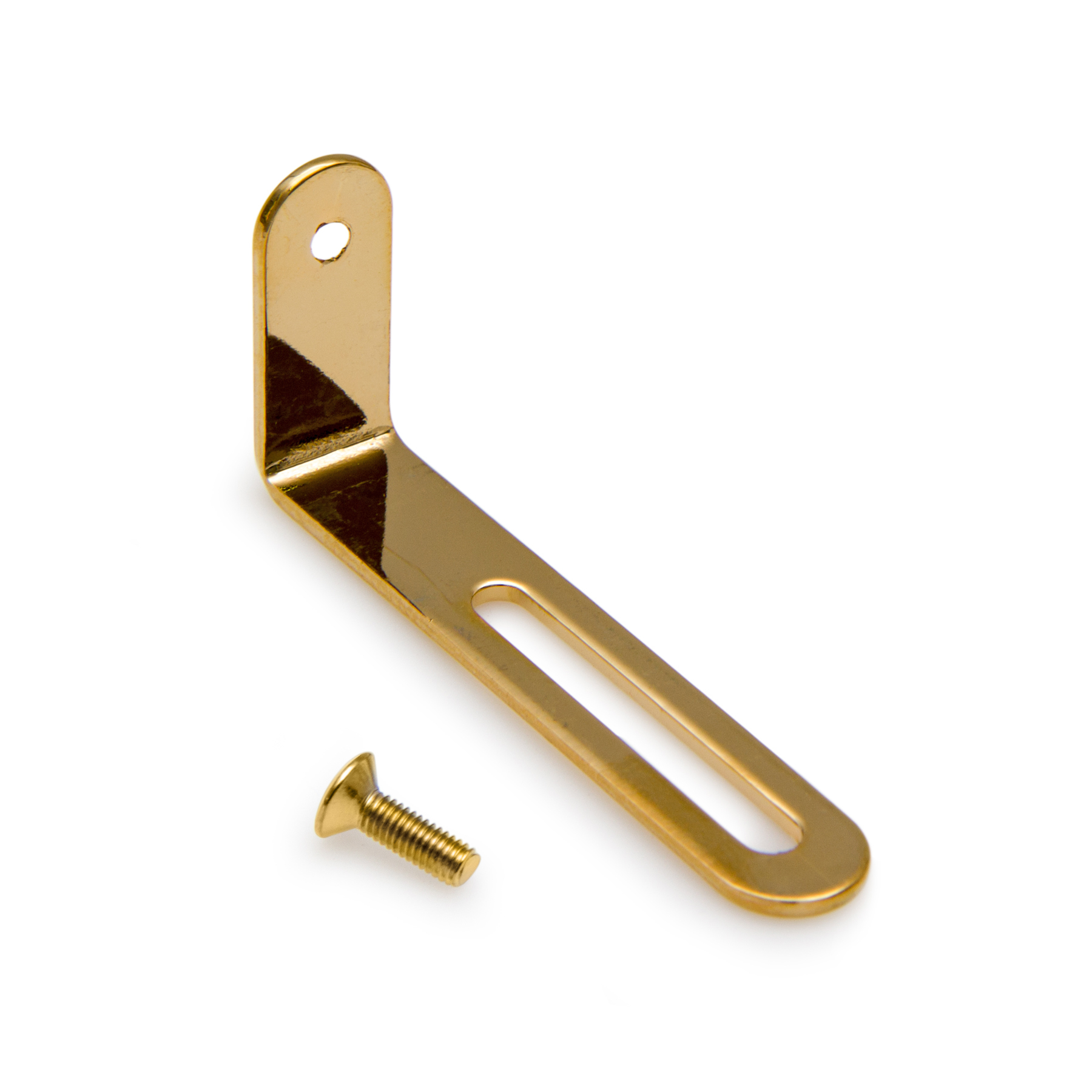 Металева пластина золотистого кольору з вигином під 90 градусів для кріплення пікгарда електрогітари в стилі Les Paul.