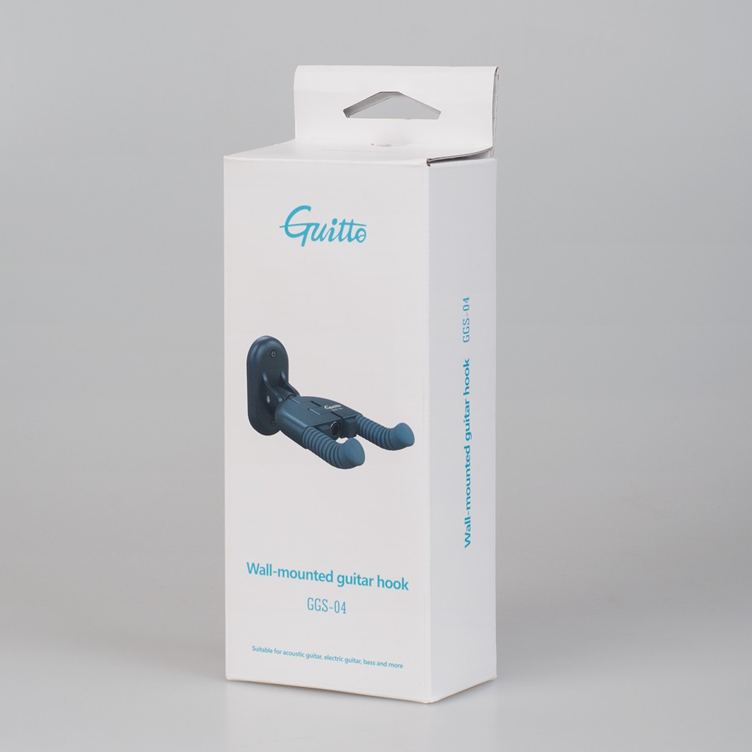 Guitto GGS-04 – це інноваційний гітарний гак для кріплення інструмента на стіну. Конструкція автоматично адаптується під вагою акустичної гітари, електрогітари, бас-гітари чи укулеле, що дозволяє досягнути надійної фіксації та сумісності з різноманітними формами голови грифа.