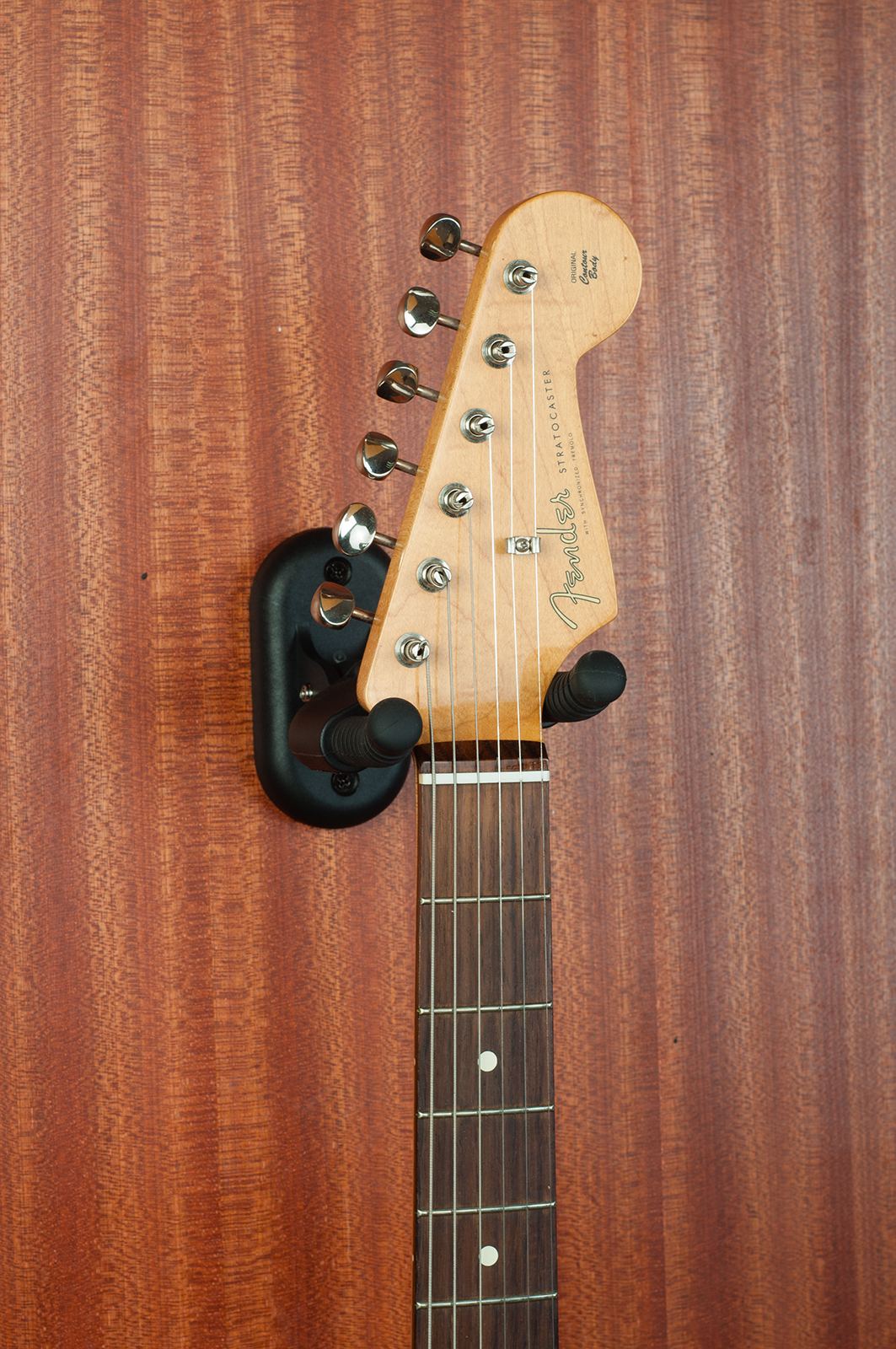 Виготовлений з поліаміду та металу, здатний легко витримувати більше 10 кілограмів навантаження. Металеві прути загнуті догори, щоб запобігти зісковзуванню гітари та покриті високоеластичним силікагелем, що захищає інструмент від пошкоджень.