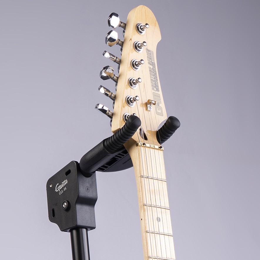Стійка для гітари Guitto GGS-06 оснащена механізмом, що надійно фіксує інструмент під дією сили тяжіння. Самоадаптивна система пристосовується до різних форм голів грифа. Складається для компактного зберігання.