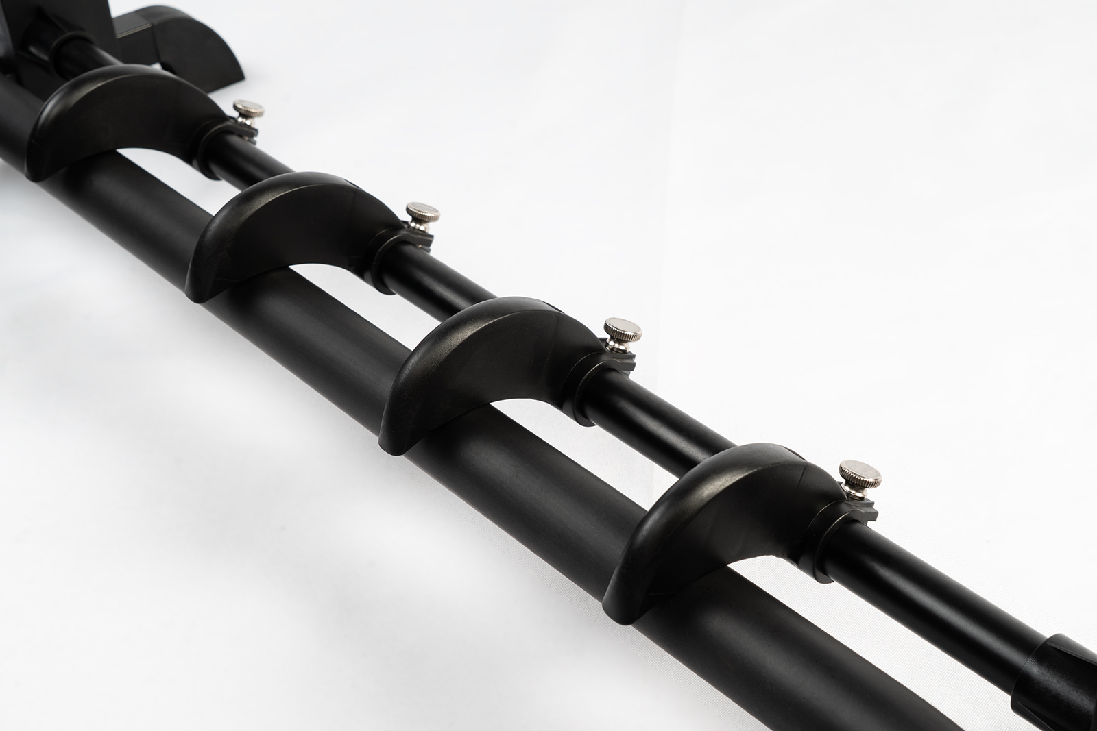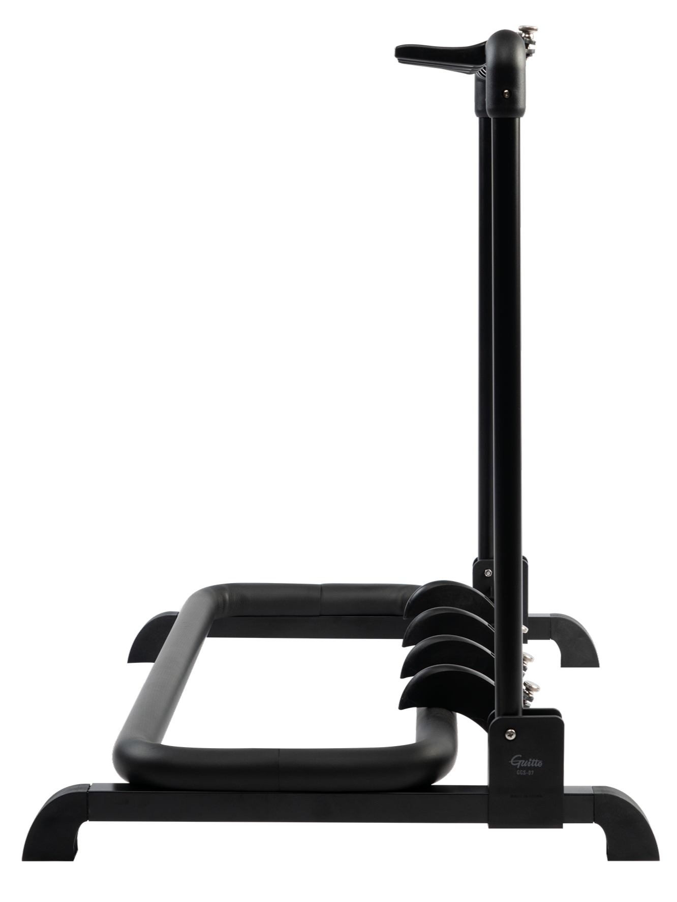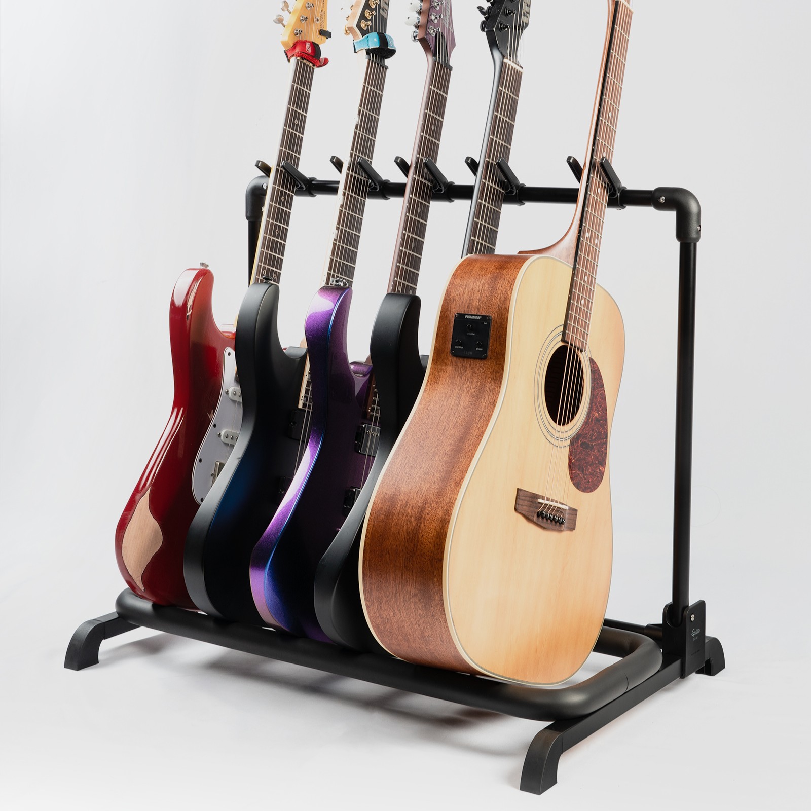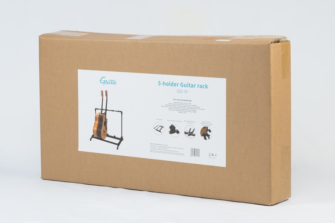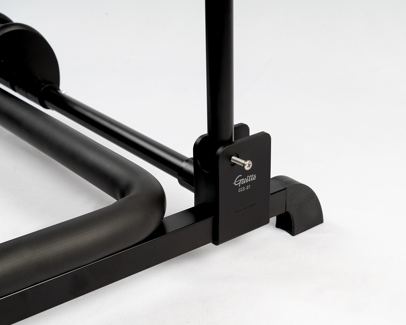 Стійка для гітар Guitto GGS-07 вміщує до 5 гітар. На відміну від подібних гітарних стійок інших брендів, Guitto GGS-07 має регульовані позиції для гітар за допомогою розділювачів, щоб кожен інструмент отримав стільки простору на стійці, скільки йому потрібно і був захищений від пошкоджень та подряпин іншими інструментами в стійці. Розбірна та складна конструкція, зручно зберігати. Стійка виготовлена з міцного поліаміду та сталевих труб, може легко витримати 30 кілограм сумарної маси.