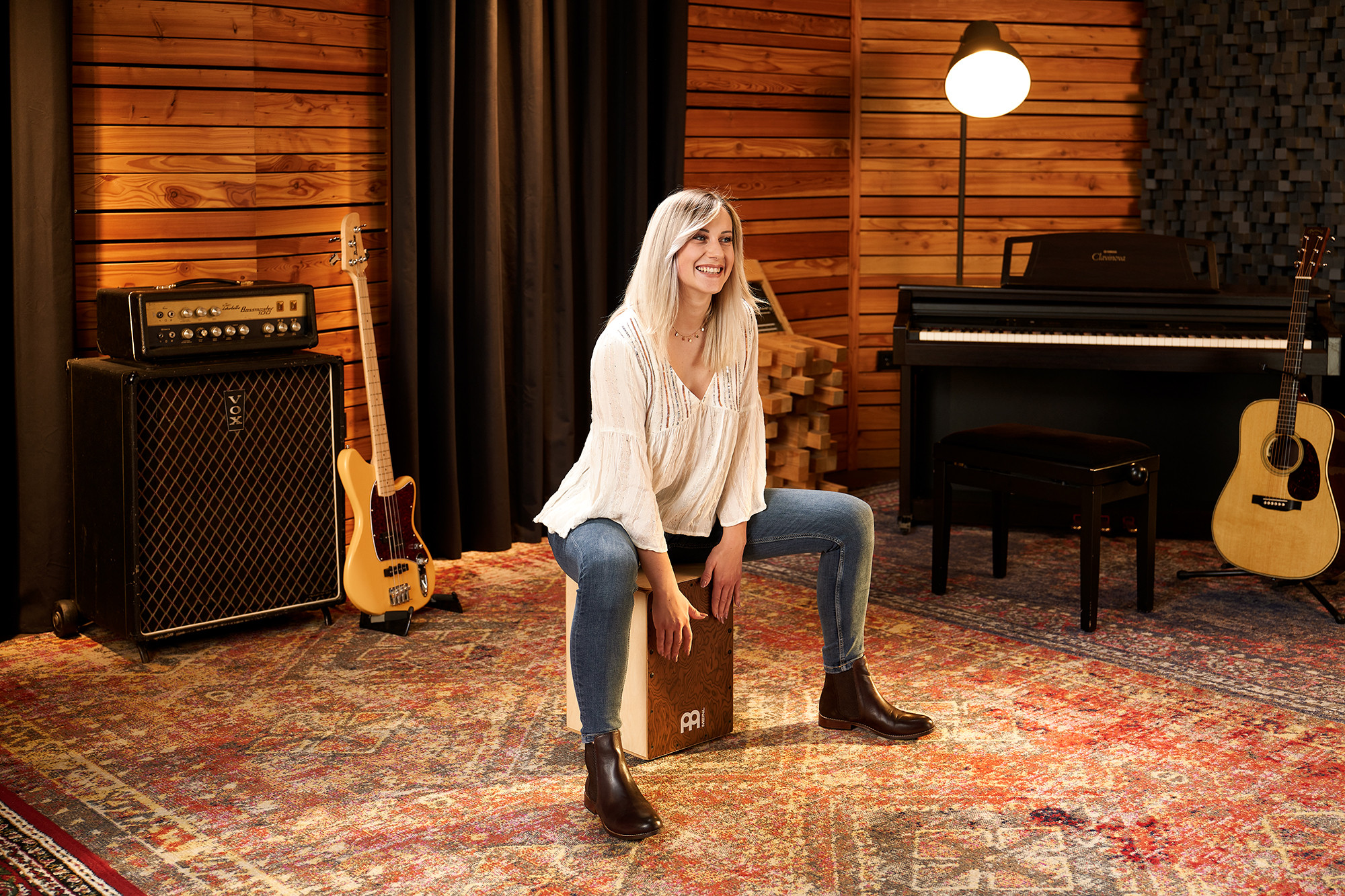 Цей кахон має звуковий отвір ззаду, для вишуканого басу та чітких звуків малого барабана, які створюються двома пружинами, що торкаються передньої панелі. Передня панель з балтійської берези ідеально підходить для акустичної музики, для будь-якого рівня майстерності та віку.