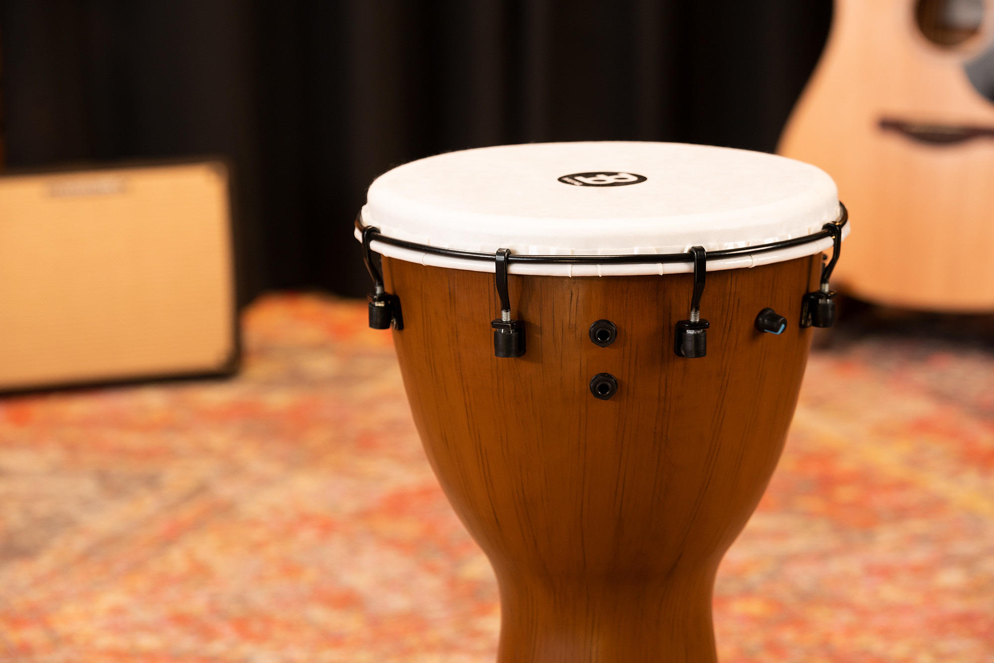 Іноді для виступів на відкритому повітрі або живих концертів необхідно більше гучності. Цей джембе оснащений п'єзоелектричним датчиком, вхідними/вихідними роз'ємами джек 6,35 мм та регулятором гучності для роботи з будь-яким підсилювачем або акустичною системою.