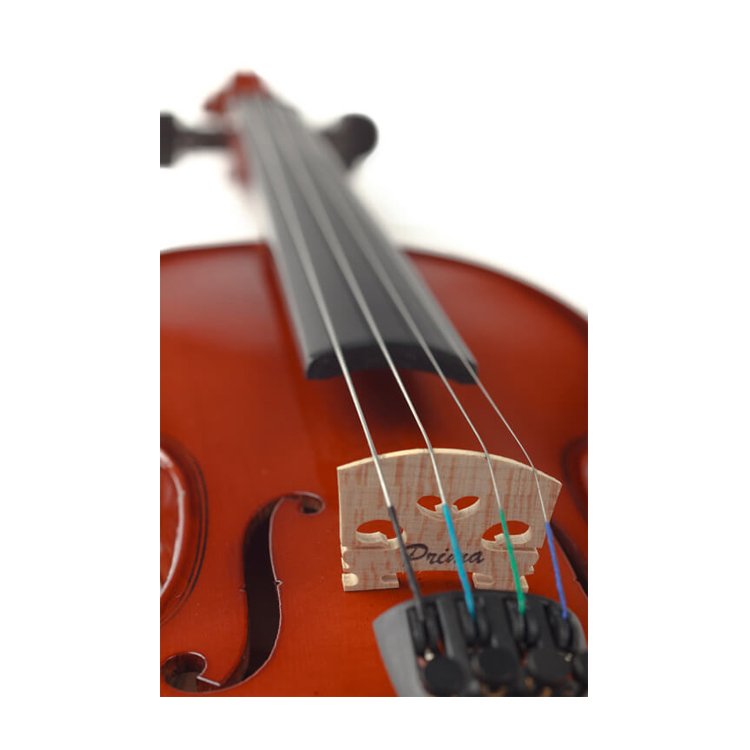 Моделі скрипок PRIMA 100 мають цільнодеревний корпус та виготовлені з якісних матеріалів, які довго вам прослужать. Верхня дека виготовлена з цільної ялини, що забезпечує скрипці чудовий звуковий баланс. Задня дека і боки виготовлені з клену, який додає звуку об'єму під час гри на інструменті. Завдяки цьому інструмент добре резонує та звучить досить голосно, що є важливим під час гри у концертній залі. Гриф виготовлений з твердих порід дерева, що забезпечує міцність та надійність. Корпус покритий тонким шаром глянцевого лаку ,що захищає деревину та надає скрипці гарний традиційний вигляд. Скрипка має насичене та яскраве звучання. На інструменті встановлений підструнник Prima, який виготовлений з клену. Струнотримач оснащений мікропідстройкою для кожної струни, що додає легкості та зручності під час налаштування. Підборідник з твердих порід дерева має таку форму ,що зробить заняття комфортними.До комплекту входить фірмовий легкий футляр, смичок та каніфоль. Футляр має м'яку оксамитовою оббивкою всередині, який захистить ваш інструмент від механічних пошкоджень та додаткові регульовані ремені для зручного перенесення. Смичок має восьмигранну форму та натуральний кінський волос. Скрипки від PRIMA – це відмінний інструмент для перших занять музикою та вдосконалення своїх навичок гри на інструменті! Якщо ви тільки починаєте музичну подорож, або вже маєте досвід гри на скрипці, PRIMA стане чудовим вибором.
