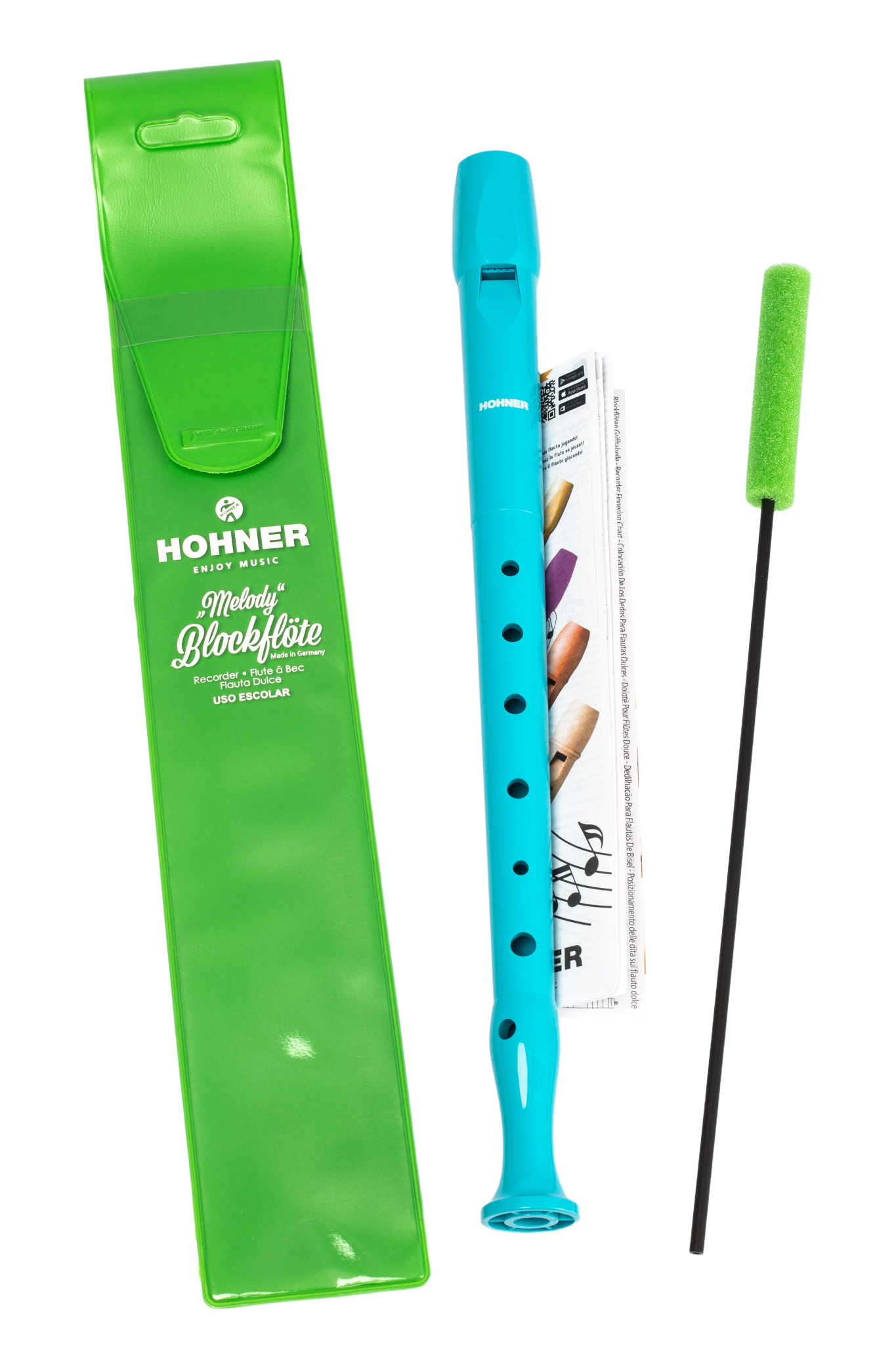 В комплекті з блокфлейтою йде зручний і практичний пластиковий чохол, шомпол для чищення корпусу від конденсату і коротка базова інструкція. Також ви знайдете інструкцію по збірці і аплікатури для блокфлейти.