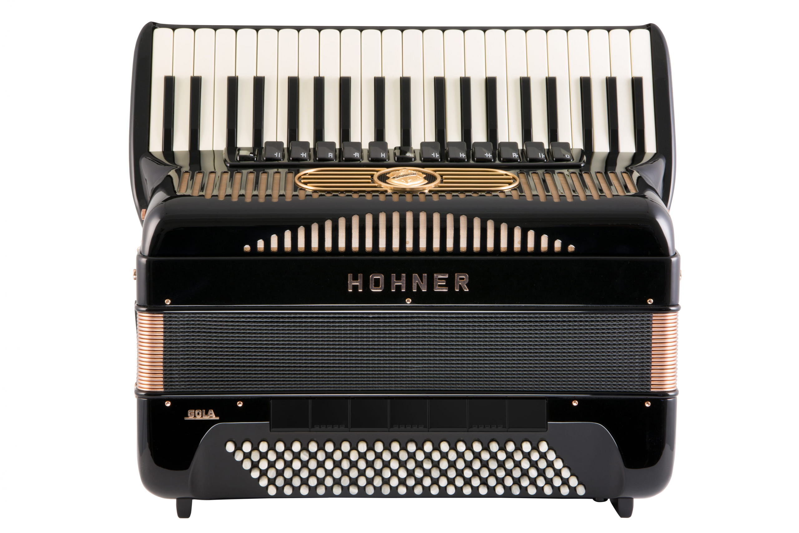 Базовая модель серии Gola имеет 41 клавишу, четыре голоса и 120 басов, комплектуется жестким кейсом на колесиках и роскошными ремнями. Для размещения заказа на аккордеон Hohner Gola обратитесь к нашим музыкальным экспертам.