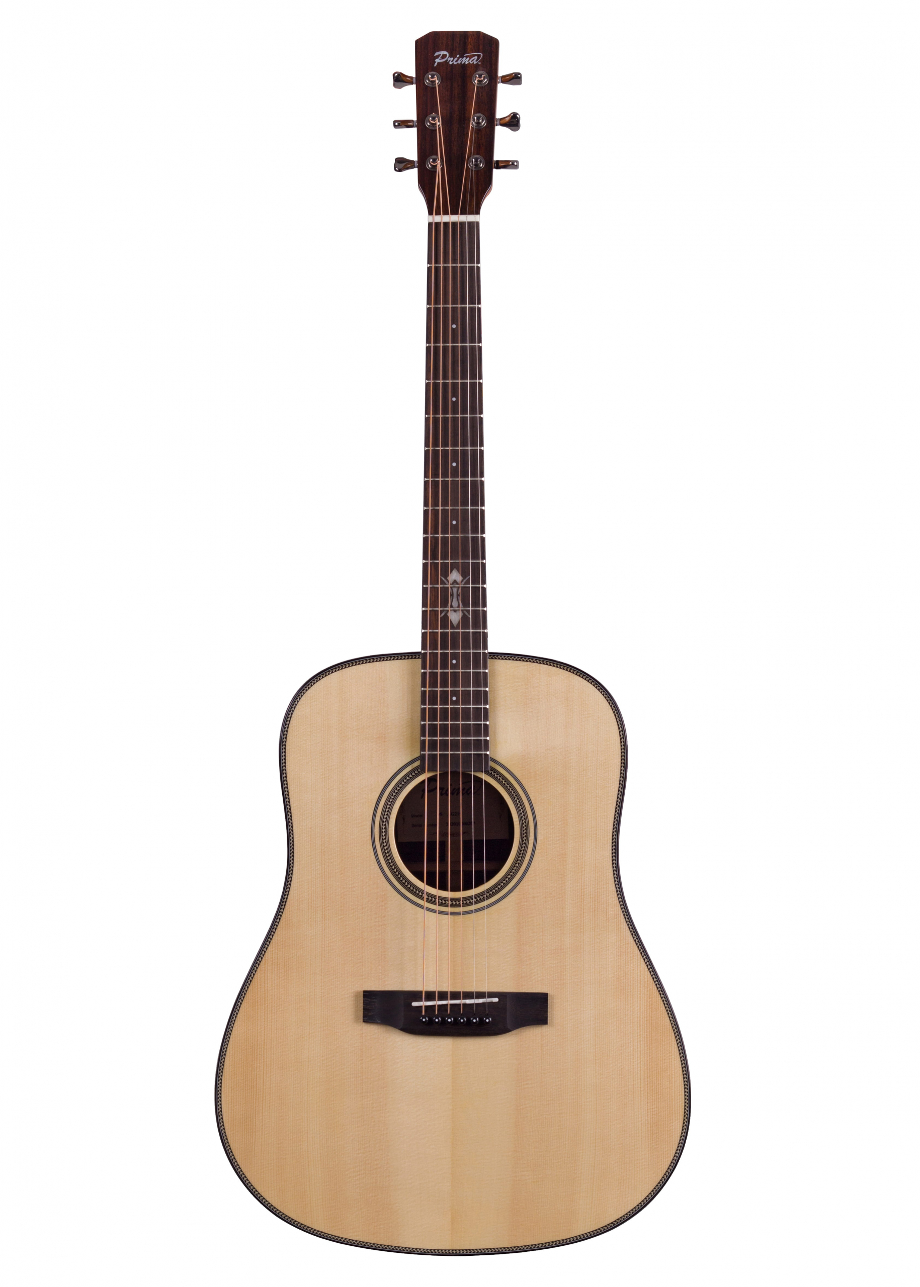 Prima MAG215 – акустическая гитара глубокой формы дредноут с корпусом из ламинированного палисандра и цельным еловым топом. Имеет рвоту с подробным узором, опоясывающим корпус и отверстие резонатора. Стильно срезанные углы головы грифа, колья цвета черного хрома с изысканной формой ручек, шпон палисандра на голове грифа и уникальная инкрустация на накладке грифа – гитара просто создана для того, чтобы доставлять обладателю эстетическое удовольствие.