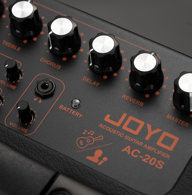 Joyo AC-20S – это обновленная, адаптированная к потребностям современных гитаристов версия комбоусилителя для акустической гитары, созданная на основе популярной модели Joyo AC-20 . Сохраняя высокое качество серии AC , Joyo добавили встроенный аудиоинтерфейс для прямой трансляции аудио, Bluetooth, разъем для наушников с отдельным регулятором громкости и встроенный аккумулятор для живых выступов на улице.