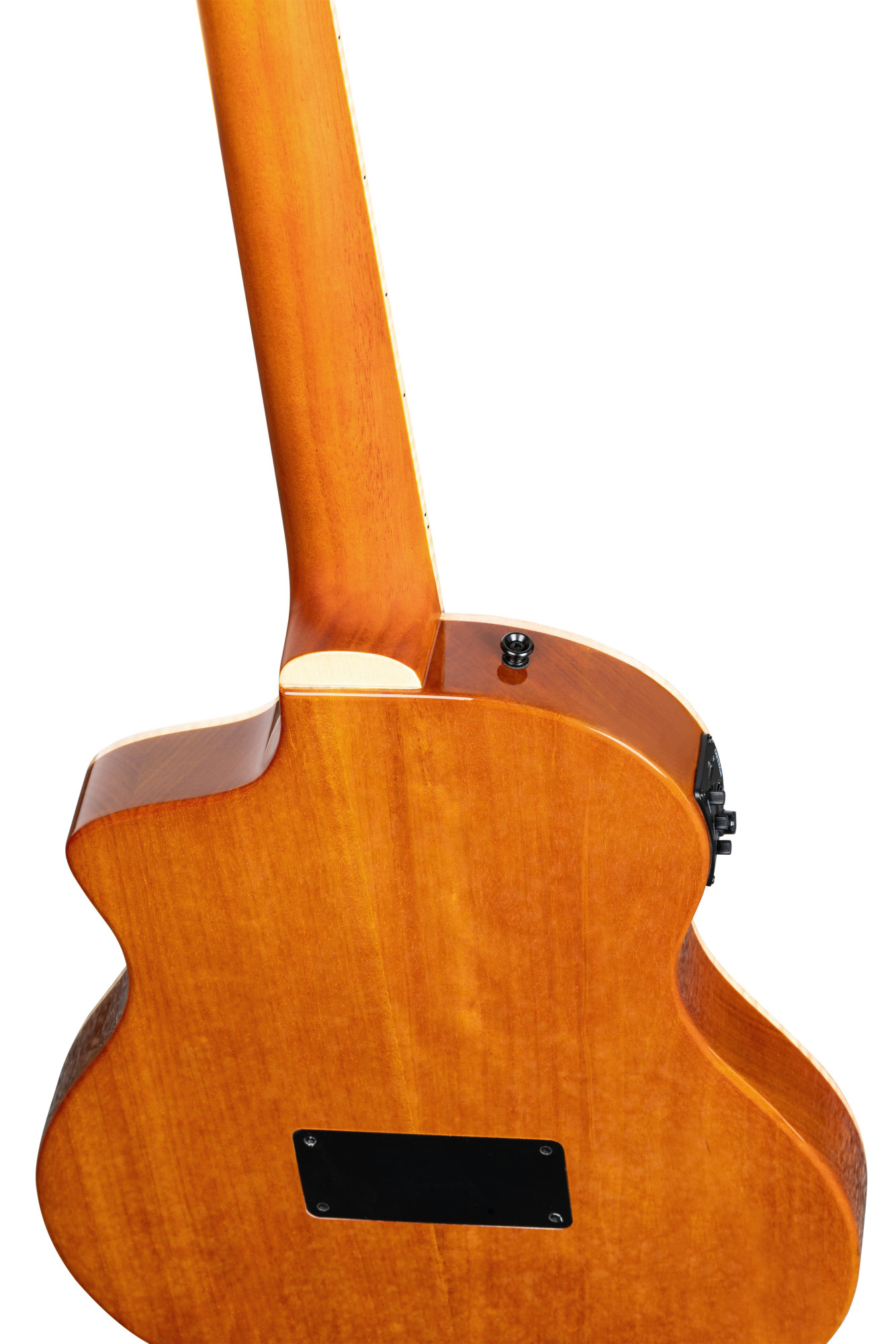 Наслаждайтесь натуральной передачей звука с аккумуляторной системой снятия звука Ortega MagusX/G . Благодаря четырем регуляторам: громкости, низким, средним и высоким частотам, а также встроенному тюнеру вы получите полный контроль над звуком на сцене. Качественный пьезозвукосъемник, установленный под нижним порожком, дарит четкий и читабельный тембр. Кроме того, преамп системы Ortega MagusX/G оснащен встроенным портом зарядки USB-C, поэтому теперь не нужно беспокоиться о покупке дорогих батареек.