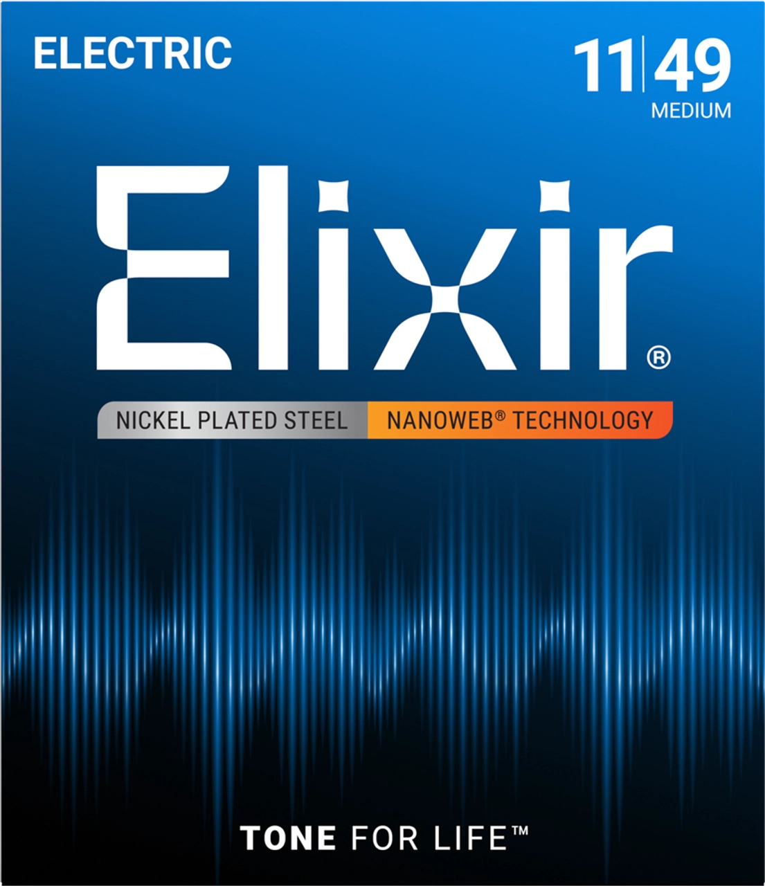 Струны Elixir® из никелированной стали с покрытием Nanoweb® обеспечивают присутствие в миксе, панче и характере традиционных струн для электрогитары, но имеют значительно продлен срок службы.
