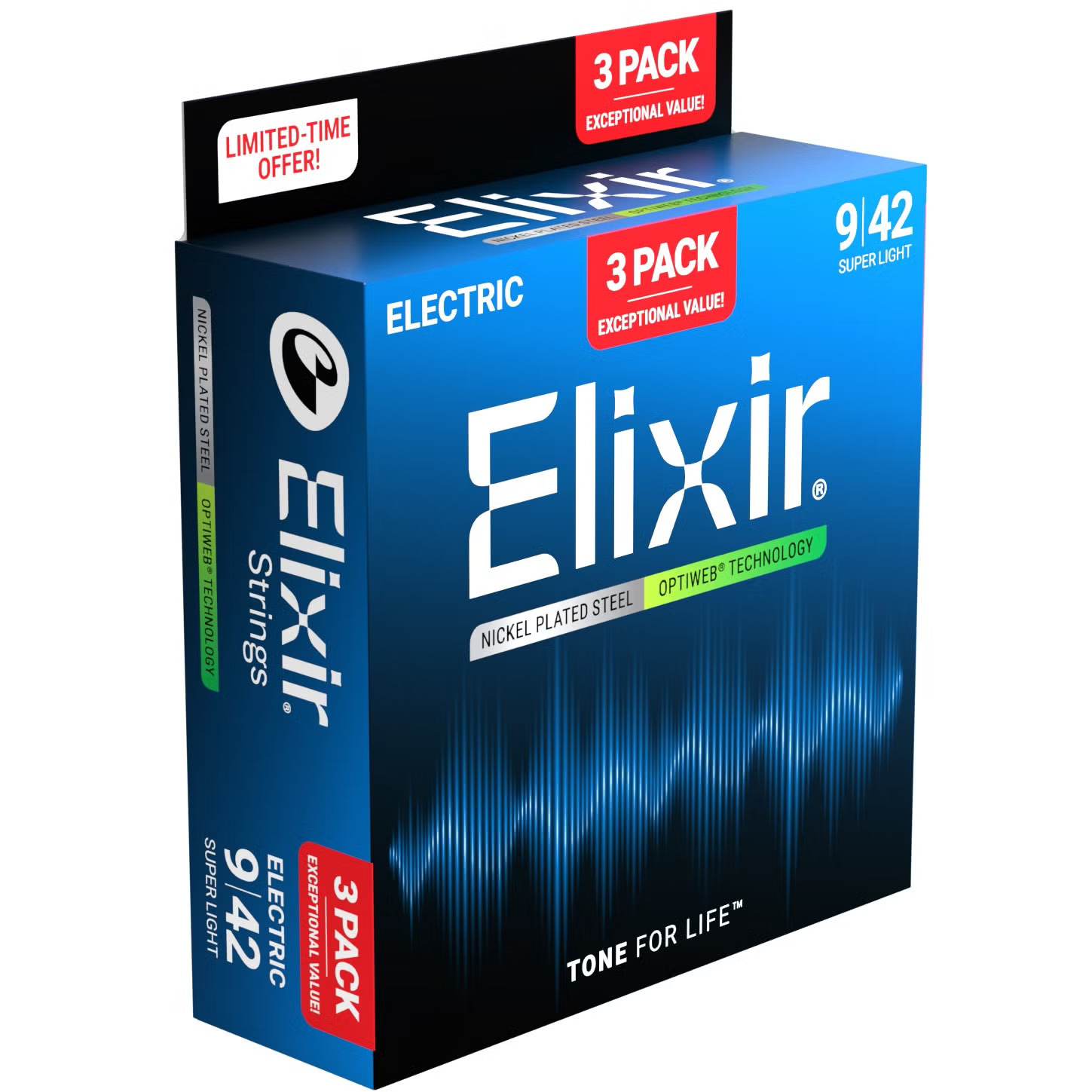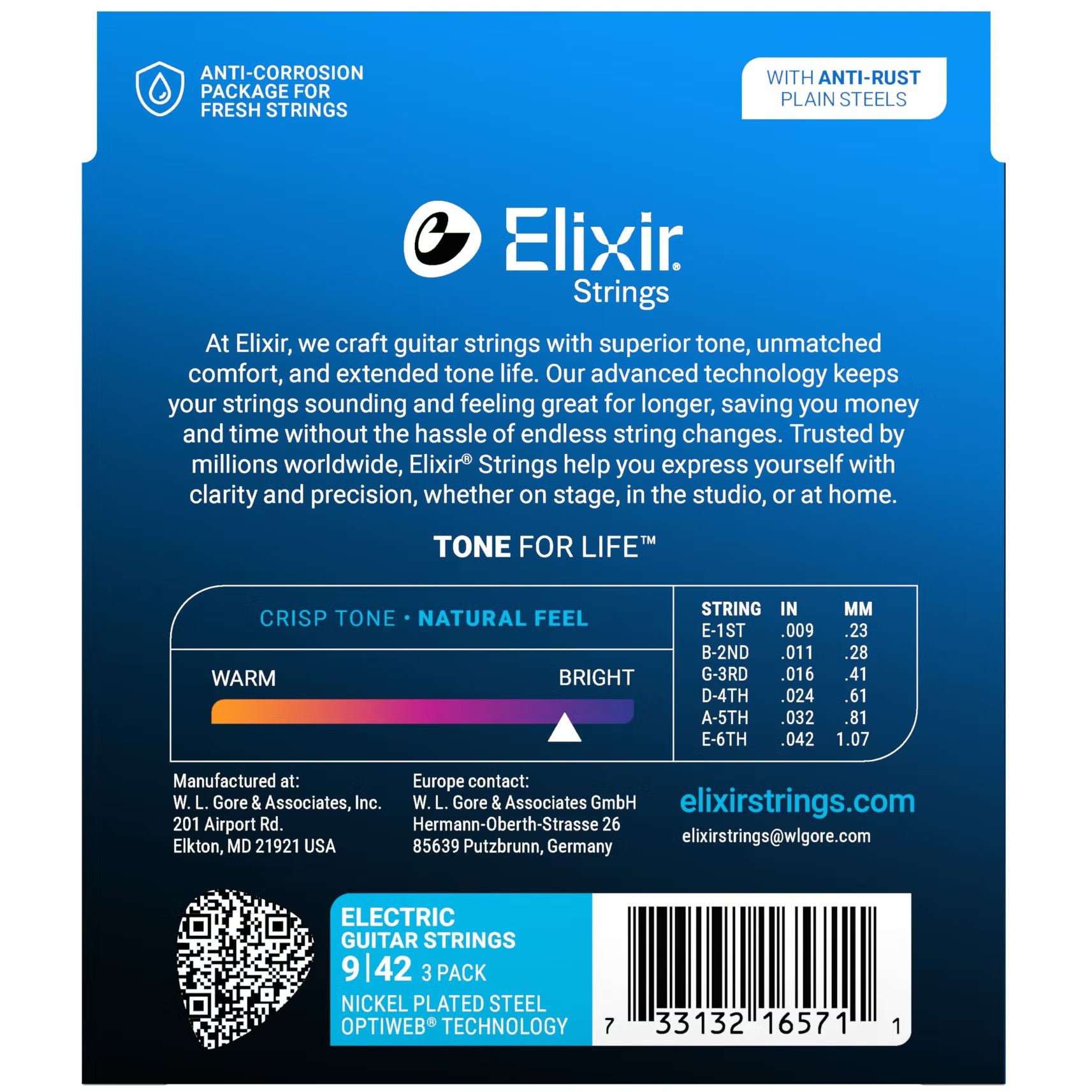 Струны для электрогитары Elixir Optiweb Nickel Plated Steel 16550, 9-42 (3 комплекта)