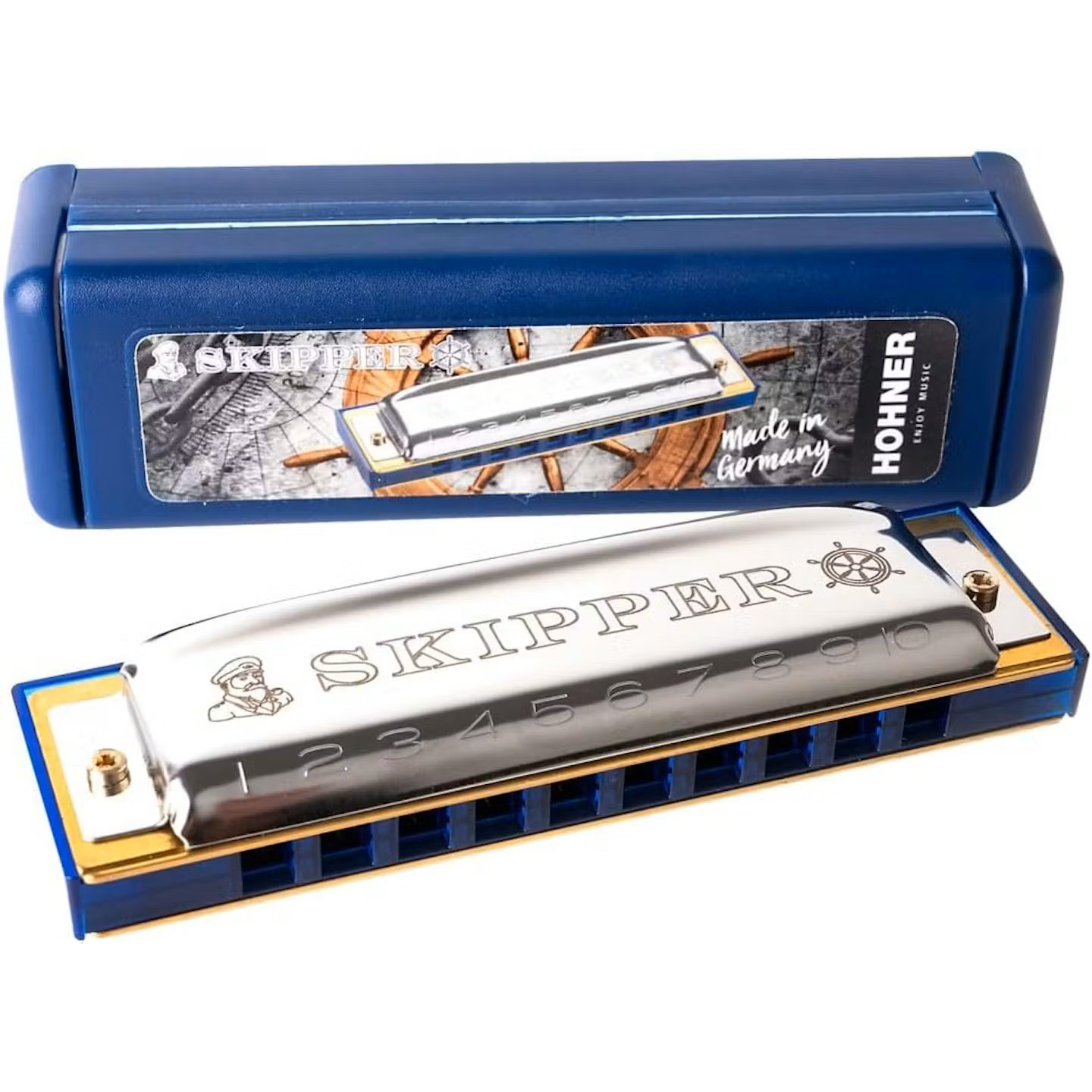 Губная гармошка Hohner Skipper Harp – это высококачественный инструмент, являющийся результатом столетних наработок компании Hohner. Эта модель изготовлена из высокопробных материалов, а способ изготовления Modular System позволяет нам убедиться в этом. Низкая цена не указывает на то, что Skipper Harp является гармошкой только для начинающих, так как множество профессиональных харперов обожают ее громкий и яркий звук. Также эта губная гармошка серии MS посвящена плывущим в далекие края темам моря, гаваней и кораблей. Вот почему она стала фаворитом также среди путешествующих людей, любящих свободу.
