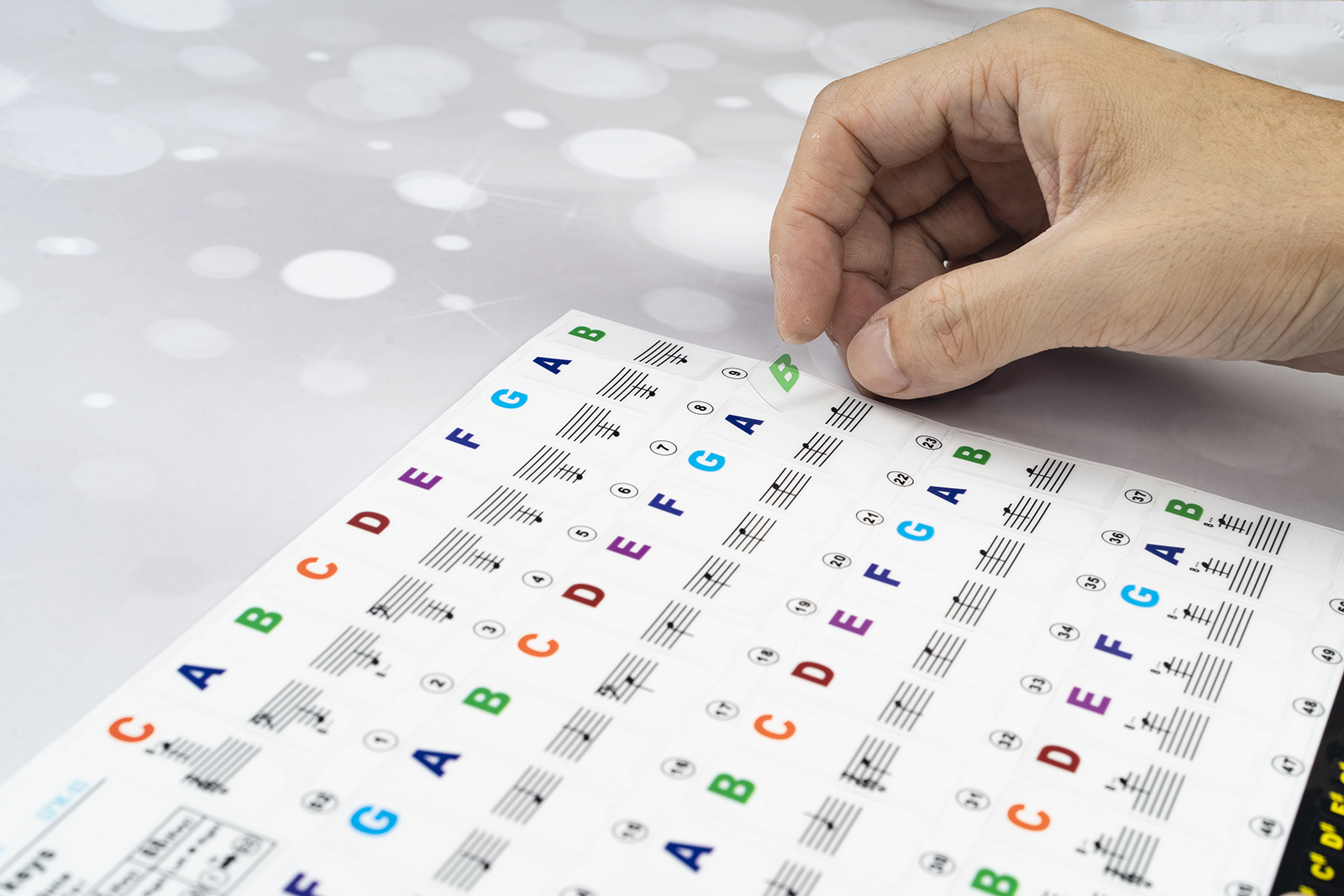 Наклейки для клавишных инструментов для более легкого запоминания нот.